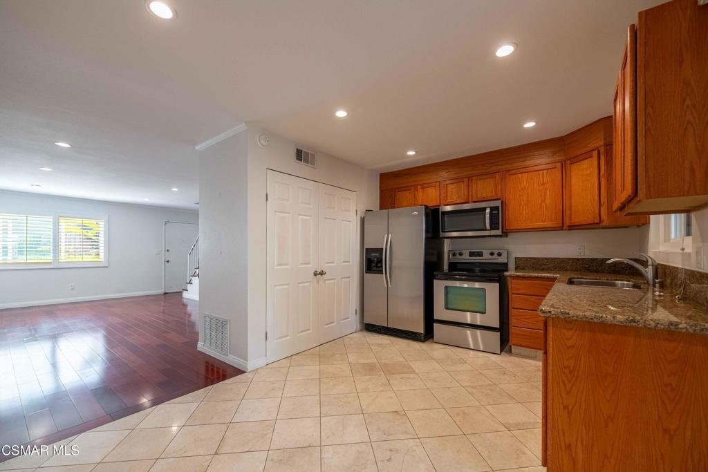 Welcome to this beautifully updated 3 bed, 2 bath townhome in the heart of Agoura Hills! Wonderful starter home OR INVESTMENT PROPERTY! Nestled in an interior location of the community, this residence offers wonderful privacy surrounded by mature shade trees. The great open layout and spacious floor plan feature nicely upgraded wood-like floors, dual pane windows, plantation shutters and recessed lighting. Charming kitchen with granite countertops, stainless-steel appliances, complete with in-home laundry--that overlooks a private yard shaded by trees, perfect for relaxing or entertaining. NEWER AIR CONDITIONER! (late 2023) WASHER, DRYER & REFRIGERATOR INCLUDED IN SALE! There is also direct garage access (one space in a shared two-car garage) The Lake Lindero Townhomes HOA INCLUDES WATER, TRASH, ROOF & WALL MAINTENANCE, EARTHQUAKE & FIRE INSURANCE, LANDSCAPING & GUEST PARKING and in addition the HOA ALLOWS RENTALS! Just moments from the lake, shops, restaurants, entertainment, beaches, and parks. Las Virgenes School District. Experience comfort, charm, and a warm neighborhood feel all in one inviting home in the heart of Agoura Hills!