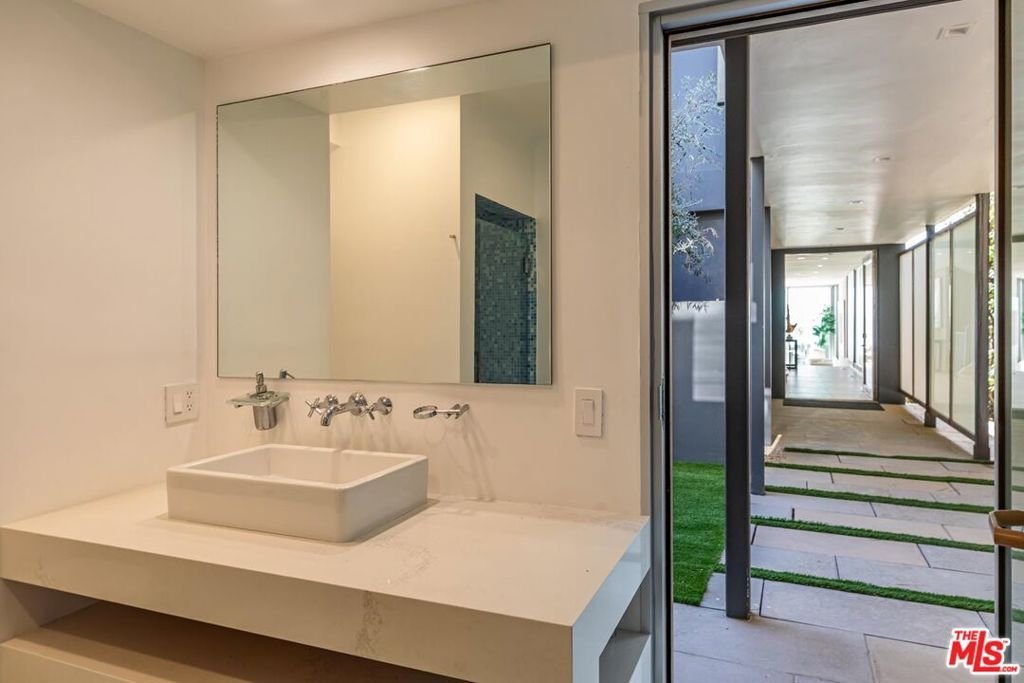 Set behind a refined teak wood facade and approached through a private courtyard, this Broad Beach architectural residence offers rare privacy with direct access to the deep, sandy beach. Fully reimagined with white oak floors, custom wood detailing, electric shades, and a calming coastal palette, the home is designed for seamless indoor-outdoor living. The main living spaces feature soaring ceilings and floor-to-ceiling glass framing unobstructed ocean and coastline views. A stone fireplace anchors the living and dining areas, flowing into a chef's kitchen with quartzite finishes, oversized island, and Miele appliances. The ocean-facing primary suite occupies the upper level, offering full-width glass, high ceilings, a private deck, fireplace, walk-in closet, and spa-like bath. The main residence includes four bedrooms, a lower-level media room, and a detached one-bedroom guest house with kitchenette. Outdoor amenities include a glass-protected dining deck, fire pit lounge, private lawn, and direct access to the sand. A rare offering combining architectural design, privacy, panoramic views, and a separate guest house - this is a true Broad Beach trophy property.