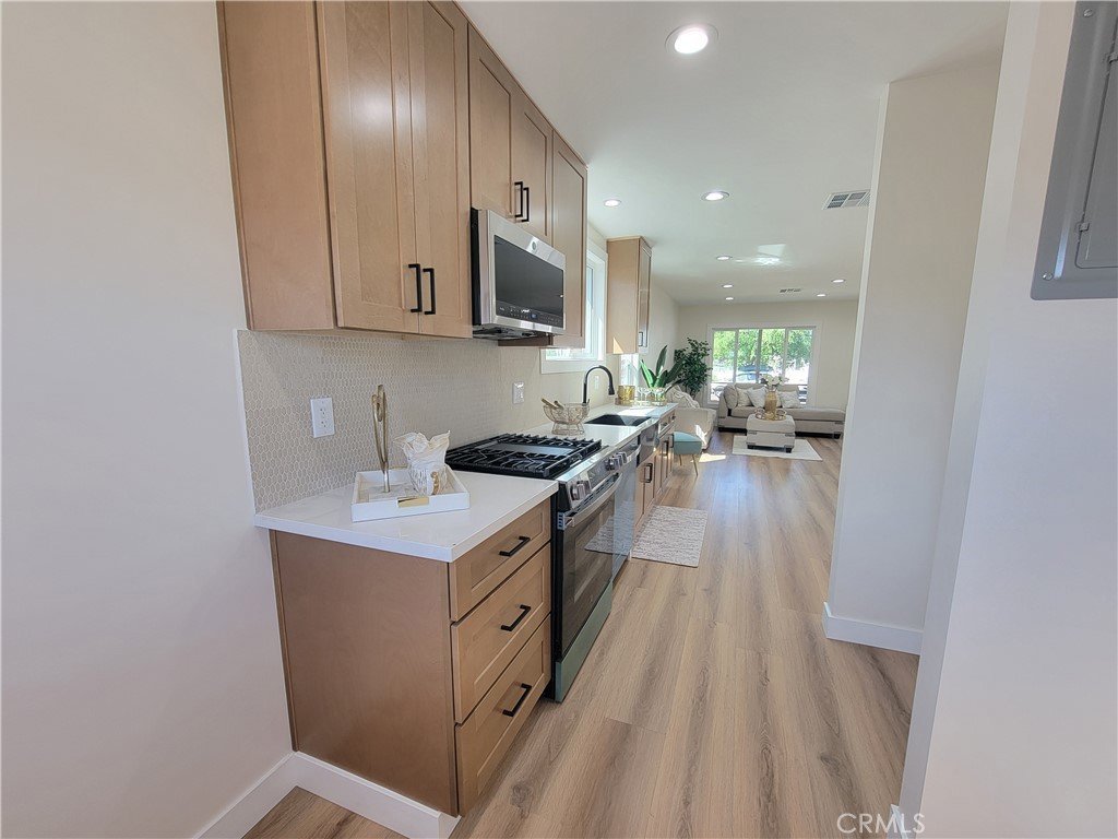 Welcome to the picturesque Wrigley Neighborhood of Long Beach. Introducing a warm and inviting completely remodeled and updated home with an open concept living room that greets you as you enter. Featuring new engineered wood flooring and a huge picture window in the living room to face out to the tree lined street of Golden Avenue - arguably the most desirable street in the neighborhood. Located walking distance to Birney Elementary School and Conveniently located near the 405 and 710 Freeways near the Bixby Knolls shops and restaurants this three bedroom home with large backyard and finished garage has everything you need. Almost everything has been updated and redone in the home including a brand new gourmet kitchen complete with waterfall edge stone counter for entertaining, enlarged bathroom, new windows, new A/C, new plumbing and electrical, new water heater, higher than code insulation for keeping the house cool during the Hot days and warm during the cold ones. Excellent potential in backyard to add ADU. Do not miss out on this wonderful opportunity! All information deemed reliable. Buyer to perform their own investigations and inspections. Broker makes no warranties or guarantees.