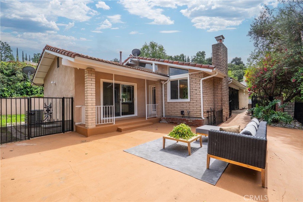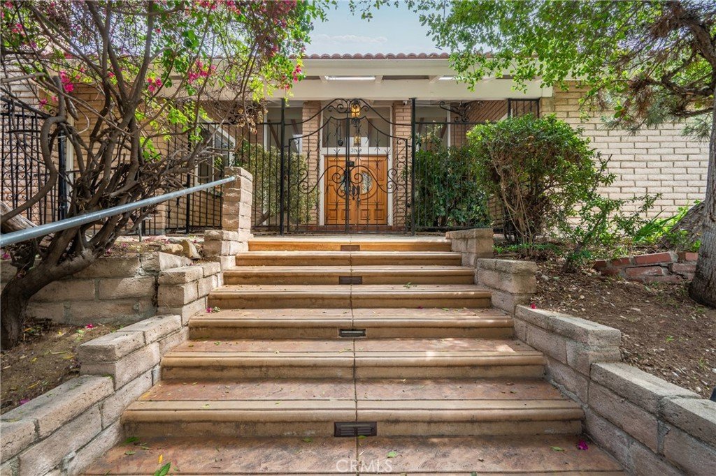 Welcome to this beautiful 3-bedroom, 2-bathroom home located in the desirable Sherman Oaks neighborhood. This charming property features a gated entrance with a circular driveway, offering both privacy and great curb appeal. As you enter, you are greeted by soaring vaulted ceilings with stunning exposed beams and a bright, open living room with travertine flooring and large sliding doors that bring in abundant natural light.