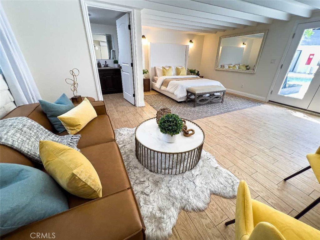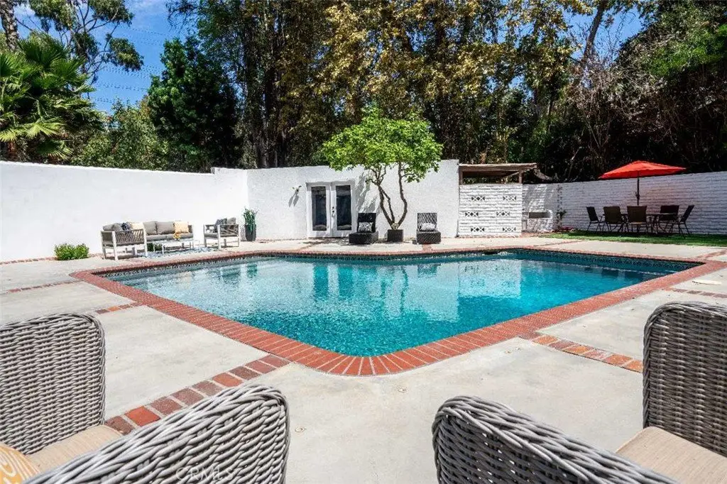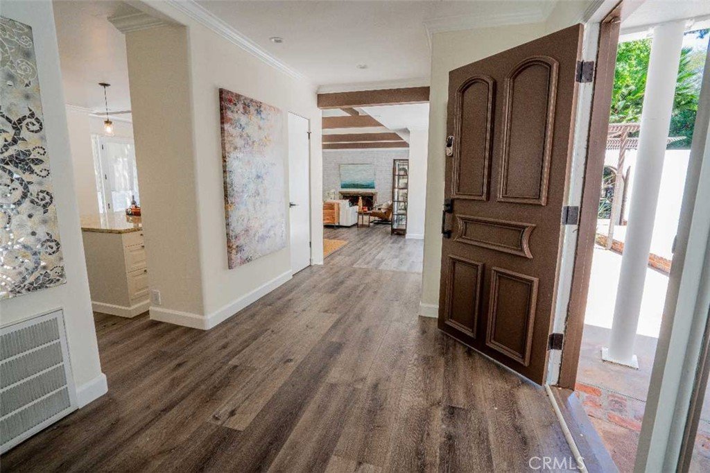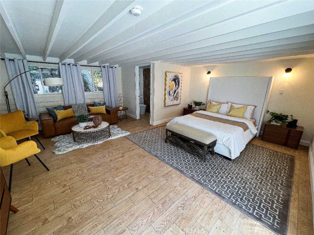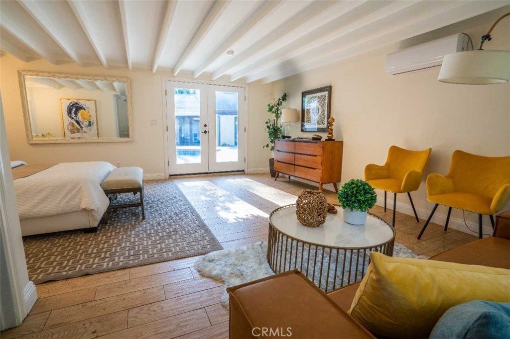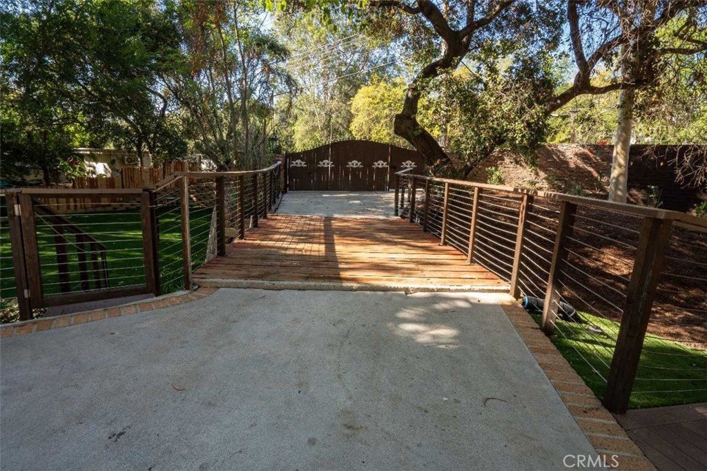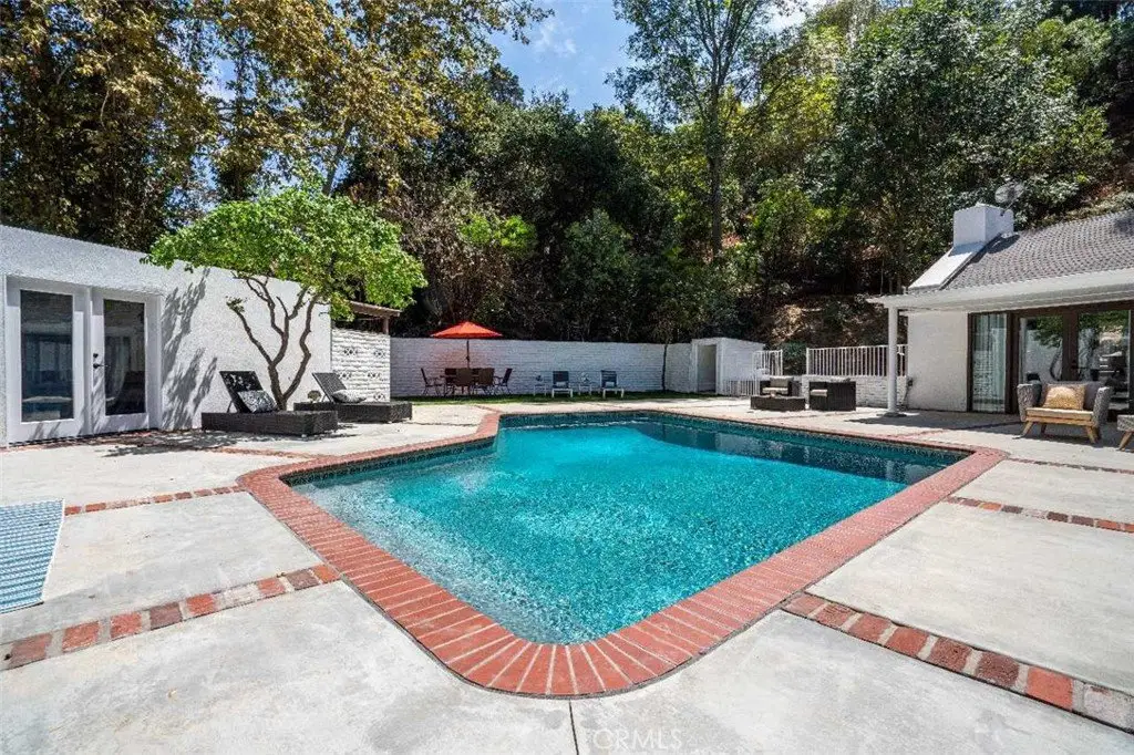 Sitting on nearly half an acre, this updated villa nestled in the heart of Studio City is a MUST-SEE to truly appreciate. Set back more than 125 feet from the street, you enter the estate through a generous motor court and over a bridged stream with parking for more than 10 cars. The entry is surrounded by luscious trees, abundant gardens, and lush nature yards. The foyer opens into the formal living room and dining room with views overlooking the vast pool. The vaulted and beamed ceilings enhance the warmth of the living, family, and dining area which is accentuated by natural light. The well-appointed kitchen has a Viking range and enormous prep island with bar sitting. The master bath has an infinity entry shower and all rooms open to the serene hillside. Abundant patios for indoor-outdoor dining provide endless entertaining opportunities. A separate guest house opens to the pool courtyard. Large lot invites adding extensive square footage and personal touches. This is a one-of-a-kind private and serene home awaiting that discerning owner desiring a majestic gem in their own enchanted forest.