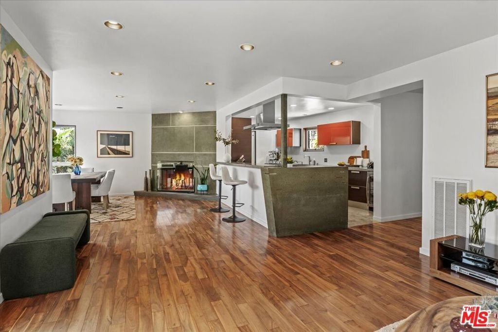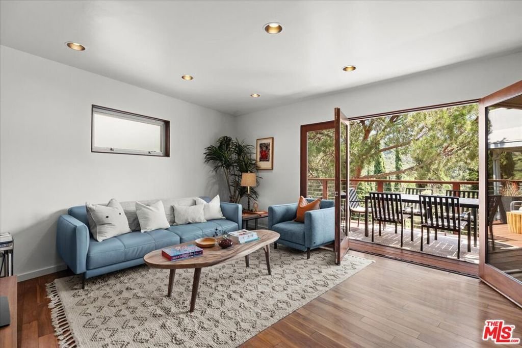 A modern canyon treehouse tucked into the iconic Hollywood Hills. Perched above the canyon, this design-forward hillside retreat offers a rare sense of privacy and tranquility just minutes from the Toluca Lake Village, the Hollywood Bowl and most major studios. French doors open from the living spaces to a charming deck nestled among the trees, creating an inviting indoor-outdoor connection reminiscent of a modern treehouse above the canyon. The open living and dining areas are filled with natural light and framed by greenery, giving the home a calm, retreat-like atmosphere while remaining close to the energy of the city. The thoughtfully designed floor plan features three bedrooms, an updated powder room and an upstairs full bath with pristine sculptural vintage tile blending comfort with nostalgia. The kitchen with high end appliances, European cabinetry & polished concrete counters flows easily into the main living areas & to the outdoor deck - perfect for morning coffee, evening gatherings or just enjoying the peaceful canyon surroundings. Set in the hills above the city with convenient access to nearby hiking trails, restaurants, and entertainment this stylish home offers a quintessential Los Angeles lifestyle that balances privacy, nature, and proximity to the city. A rare opportunity to experience stylish canyon living with warmth, character and an effortless connection to nature.