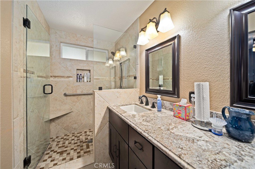 Price Improvement! This beautifully updated 3-bedroom home offers comfort, style, and convenience. Perfectly located in a commuter-friendly area of Palmdale, this move-in ready gem features a fully remodeled kitchen with modern finishes, luxury vinyl flooring throughout, paired with energy-efficient vinyl windows and classic window shutters that add privacy, insulation, and a touch of sophistication. The cozy family room features a striking slate fireplace, creating a warm and inviting atmosphere. The spacious primary suite is a true retreat, with a large walk-in closet, updated ensuite bathroom, and a bonus retreat area—that could easily be converted into a 4th bedroom. Stylish barn doors and built-in shelving create a custom feel to the office/den/3rd bedroom. Additional highlights include newer HVAC, tankless water heater, solar, 160 sq. ft. 3-season room and covered patio — ideal for enjoying the California lifestyle all year round. Don’t miss the opportunity to make this thoughtfully upgraded home your own.