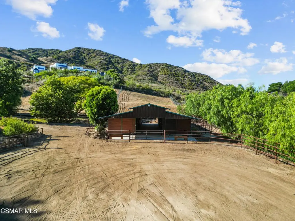 Mulholland Canyon Ranch Perched high above the Malibu coast and canyons, Mulholland Canyon Ranch is a rare and stunning equestrian retreat offering awe-inspiring mountain and ocean views across approximately 3.26 serene acres. This beautifully crafted estate includes 4 bedrooms and 4.5 baths. A thoughtfully designed 3 bedroom, 3.5 bath main residence and a dreamy 1 bedroom, 1 bath guest house, blending modern luxury with rustic charm. Step inside to find soaring ceilings, concrete floors, concrete counters, striking steel framed doors and windows that bathe the home in natural light. Enjoy breathtaking views and fresh breezes through expansive glass openings that blur the line between indoors and out. The luxurious primary suite features dual showers, a spa-like soaking tub, and a private balcony that sits high above the lush, manicured grounds - framing a gorgeous view of the ocean. Each bedroom offers a private en-suite bath and access to a shared balcony. The family room features built in closets, a dedicated desk area and its own private balcony with gorgeous views. Outdoors, indulge in a resort-style setting with covered seating, a sleek wet bar, outdoor shower and a tranquil reflection pond accented by a cascading waterfall. The lush, mature landscaping showcases stately olive trees and a vibrant tapestry of foliage, creating a serene and private retreat. Designed for the ultimate Malibu lifestyle, the property features versatile equestrian facilities including a lighted eight-stall barn with a tack room, multiple turnouts, two large corrals and a riding arena. A large covered and fenced structure offers flexible use as a stylish chicken coop, dog kennel, or creative outdoor space. With its celebrity pedigree and a park-like setting that is peaceful and private, this fully fenced and double gated property is the ultimate blend of nature, luxury and lifestyle, offering a rare opportunity to own a true Malibu retreat.