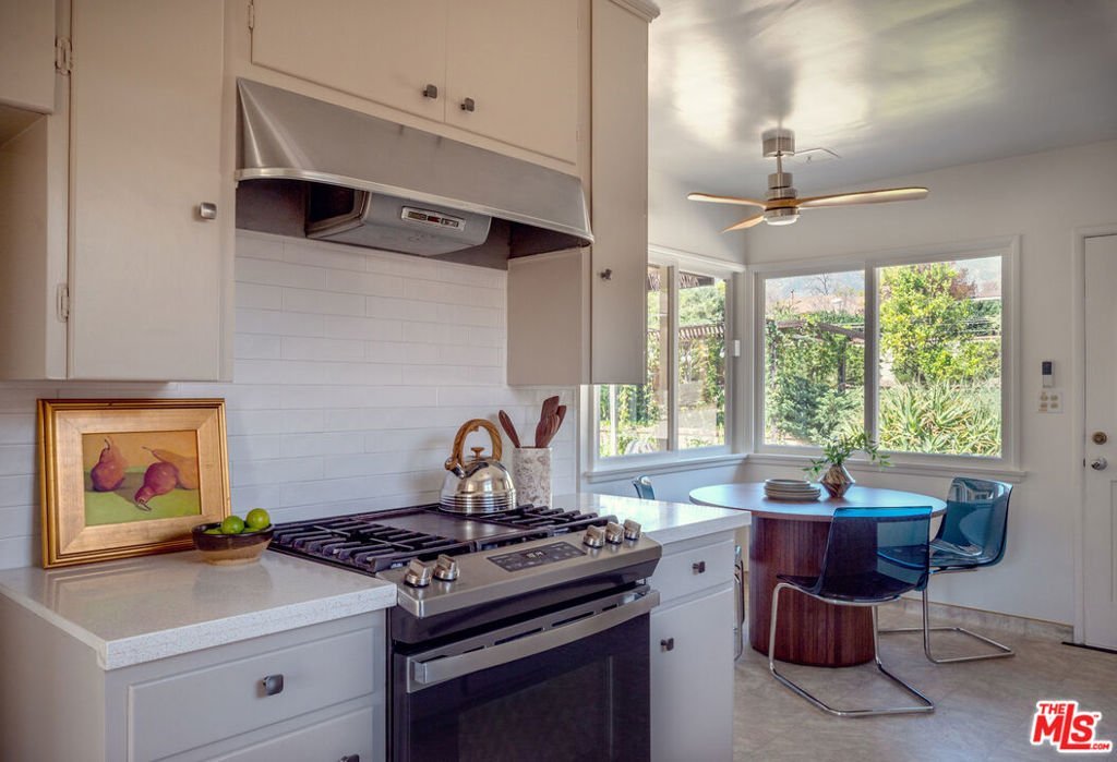OFFERS DUE: 03-12-26 by 12PM. Nestled on a quiet, tree-lined street in the highly desirable city of Pasadena, bordering the Hastings Ranch neighborhood, this charming cottage home offers picturesque views of the San Gabriel Mountains and sits on an expansive 8,700+ sq ft lot. Filled with an abundance of natural light, the home blends timeless character with subtle mid-century influences. The inviting living room showcases beautiful wood built-ins that frame the fireplace, creating a warm and welcoming focal point. The dining room, wrapped in windows, offers a bright and airy setting and flows seamlessly from the eat-in kitchen perfect for entertaining. The spacious family room features dramatic high-pitched beam ceilings and opens to an enchanting patio retreat, with sitting and dining areas surrounded by lush flowers and climbing vines an ideal setting for relaxing evenings or weekend entertaining.The generously sized primary bedroom captures serene mountain and backyard views, while the second bedroom offers ample space and comfort. The bathroom maintains its vintage charm with original blue tile, a separate shower, and a tub. Adding versatility, the den includes a closet and could easily be used as a third bedroom, home office, or guest room. The ageless character is further complimented by contemporary enhancements including updated electrical panel, smart thermostat, sprinkler system, and EV charging. The garage is the perfect home gym or office space, and could easily be converted into an ADU if permitted by the city. Buyer to do their own investigations. Enjoy the many recreation options within walking distance, including Victory Park, Alice's Dog Park, Hastings Branch library, a golf course, and the Pasadena Farmers Market on Saturdays. Convenient nearby shopping and dining options include Whole Foods Market and Trader Joe's, as well as the popular walkable downtown of Sierra Madre, with its bookstore, trendy cafes, bars, restaurants, and events. With easy access to the 210 Freeway, this home offers both tranquility and connectivity in one exceptional location.