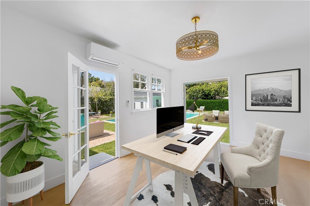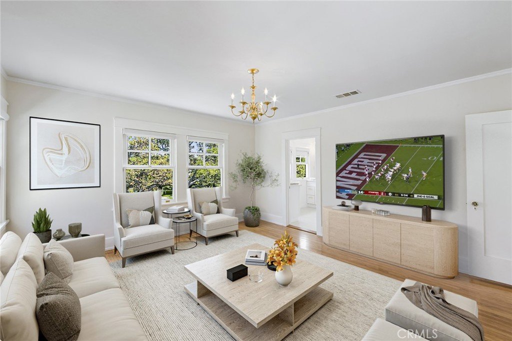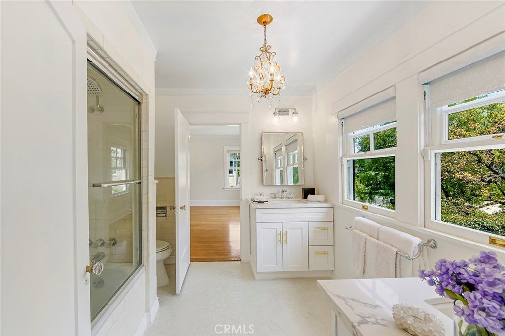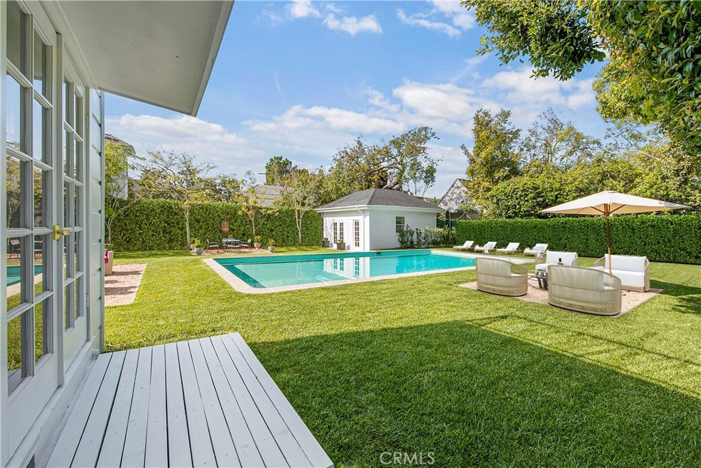 ALL NEWLY RENOVATED AND MOVE-IN READY! This breathtaking 5 bedroom, 4+ bathroom estate with 2-car garage sits upon an ultra-luxe 13,525 square ft. (.31 acres) lot and is conveniently located within short-walking distance to the prestigious Marlborough School and vibrant Larchmont Village. On the market for the first time in over 50 years, this freshly renovated, historic 1927 Georgian style estate located in highly coveted Windsor Square in Hancock Park. Designed by well-known Windsor Square architect Robert D. Jones, this gem is ideally situated behind mature magnolia and pear trees and accented with wood siding and white brickwork. Honoring the property's historical and architectural integrity, every inch has been meticulously restored. Renovations include ALL-NEW custom landscaping, lighting, and irrigation, ALL-NEW driveways and walkways, ALL-NEW plumbing throughout the house and an ALL-NEW main sewer line to city street, ALL-NEW electrical throughout the house and a 400-amp main panel and subpanel in basement, ALL-NEW heating and air conditioning systems with enhanced capacity, ALL-NEW Thor Kitchen appliances, ALL-NEW ADT Security System, along with refurbished original wood windows and a combination of original period classic and new wide-plank honey toned oak flooring, this gorgeous estate epitomizes old-world elegance with a perfect blend of modern lifestyle spaces and conveniences. All of the rooms are filled with sunlight and overlooking the elegant front garden and estate scale rear lawn, bright blue pool and manicured garden spaces. Outside, well-proportioned conversation spaces surround the pool, in conjunction with lush expanses of lawn up to the edge of the pool and immersed in rose and star jasmine-filled aromas that create a classic setting to entertain, play or relax amidst the serene private garden. Anchoring the grand rear garden area, and unique to most residences in Windsor Square, is a detached guest house with a Certificate of Occupancy and complete with ½ bath, that can be adapted to any number of creative designs from home office to exercise studio. Additionally, at the front of the residence is a separate two-car garage enhanced with ample side-by-side space in the driveway for 4 additional cars. This home was featured in Matthew Broderick’s 1983 film “War Games”.