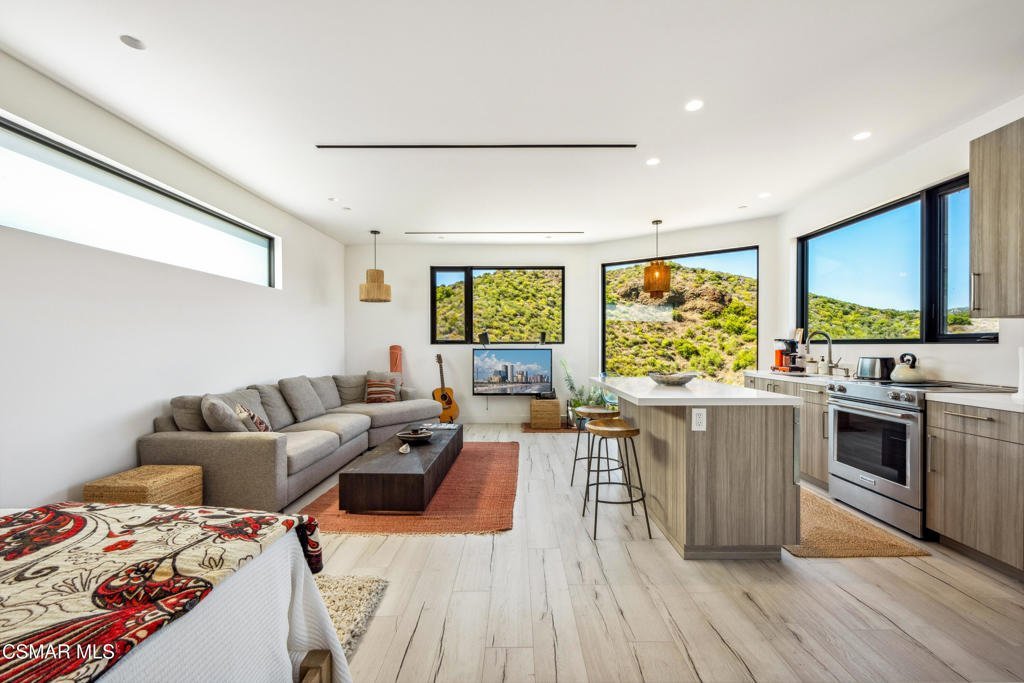 Malibu retreat with separate guest quarters...Contemporary Coastal Living, New Construction 2022 with fine finishes & ocean views! Experience the best of private coastal living in this custom masterpiece, perfectly situated to capture mountain and ocean views. Tucked away, this thoughtfully designed residence offers the ultimate in style, luxury, entertainment and true privacy. The main home features clean architectural lines, expansive windows, and a seamless indoor-outdoor flow that highlights the surrounding natural beauty. The open-concept floor plan is ideal for entertaining and everyday living, while the premium finishes and designer details add sophistication throughout. A detached guest house with a separate entrance provides excellent flexibility--ideal for extended family, guests, or a private office. Two spacious two-car garages provide ample parking and storage. One garage includes a dedicated area with air conditioning, perfect for a hobby space, fitness room, or workshop.With its elevated setting, modern amenities, and rare privacy, this exceptional home offers a unique blend of tranquility and coastal luxury.