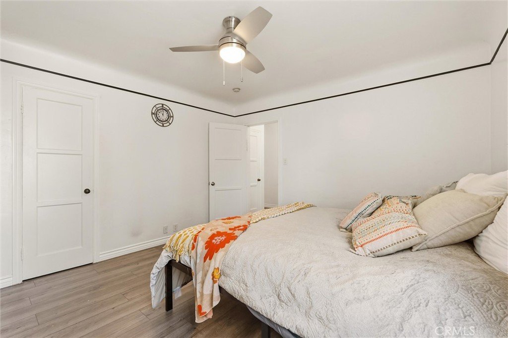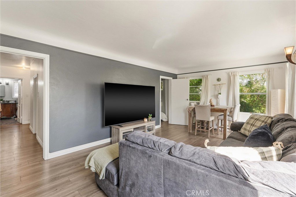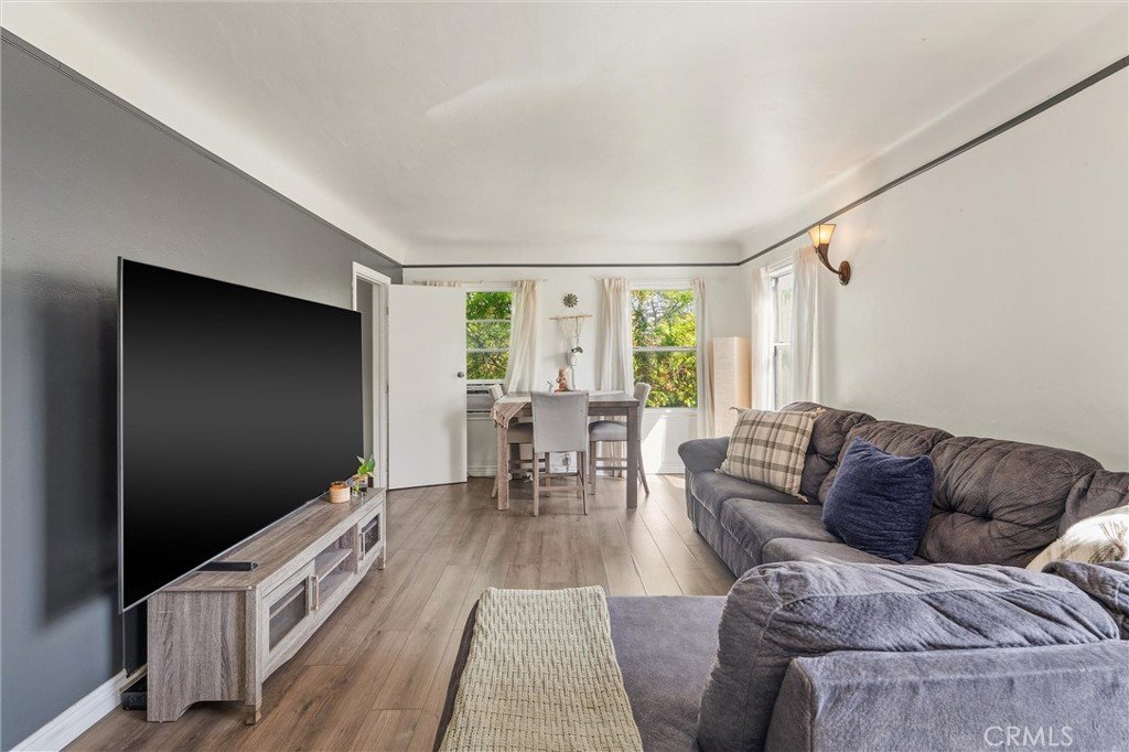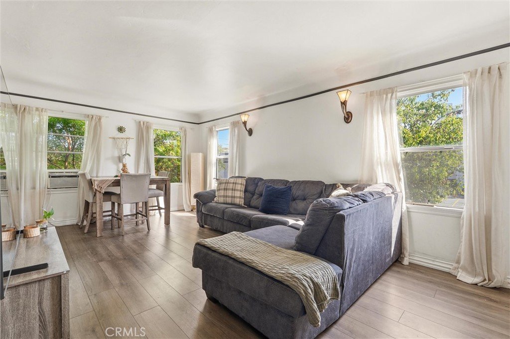 Discover this chic end-unit condo, located on the upper level at the front of the building. This inviting 1 bedroom, 1 bath residence boasts a spacious living room plus a bonus room, ideal for a home office. The home features fresh paint and stylish wood-like flooring throughout, along with ample closet space. The secure complex offers a community laundry room, storage facilities and a large shared backyard. HOA covers most utilities, including water, gas, and trash, leaving you responsible for only internet and electric.