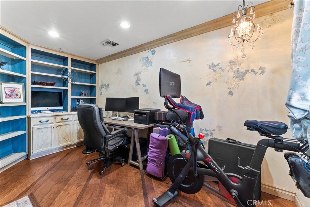 - Interior Features: BreakfastBar, BuiltInFeatures, BreakfastArea, ChairRail, CeilingFans, CrownMolding, DryBar, CofferedCeilings, SeparateFormalDiningRoom, EatInKitchen, GraniteCounters, InLawFloorplan, OpenFloorplan, Pantry, PullDownAtticStairs, PartiallyFurnished, RecessedLighting, Storage, AllBedroomsDown, Attic, BedroomOnMainLevel