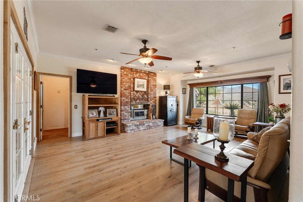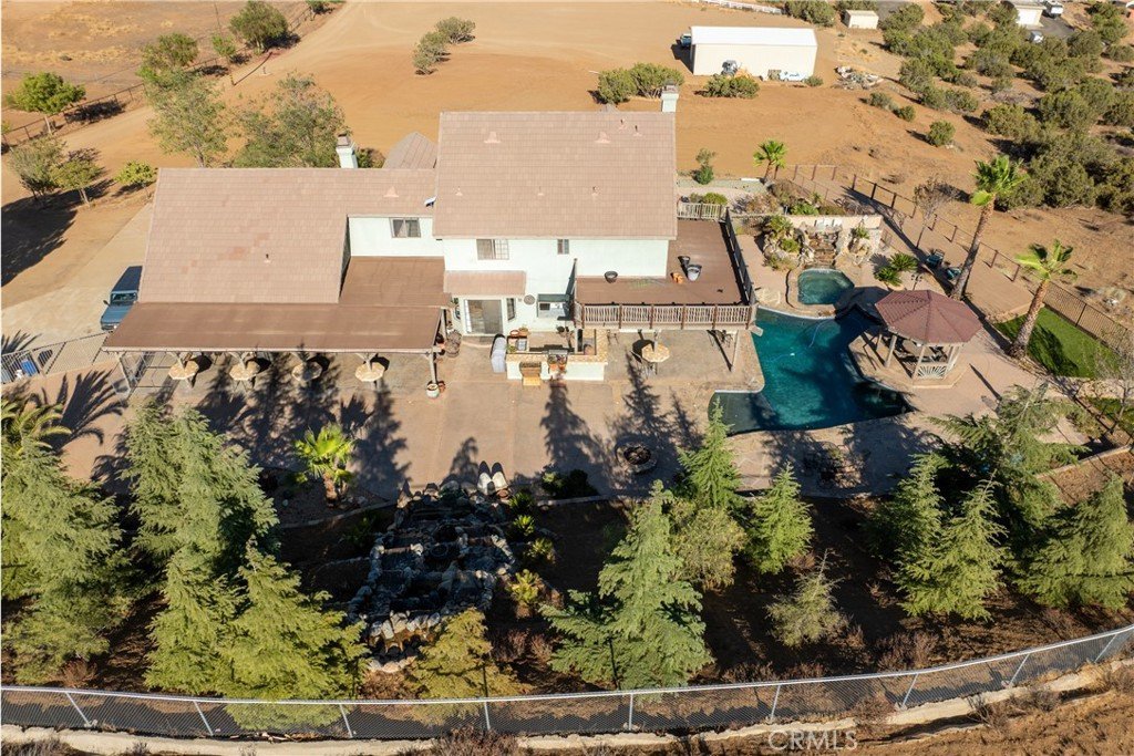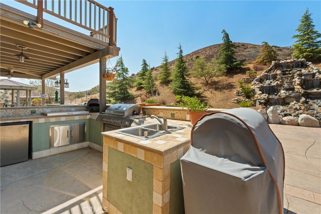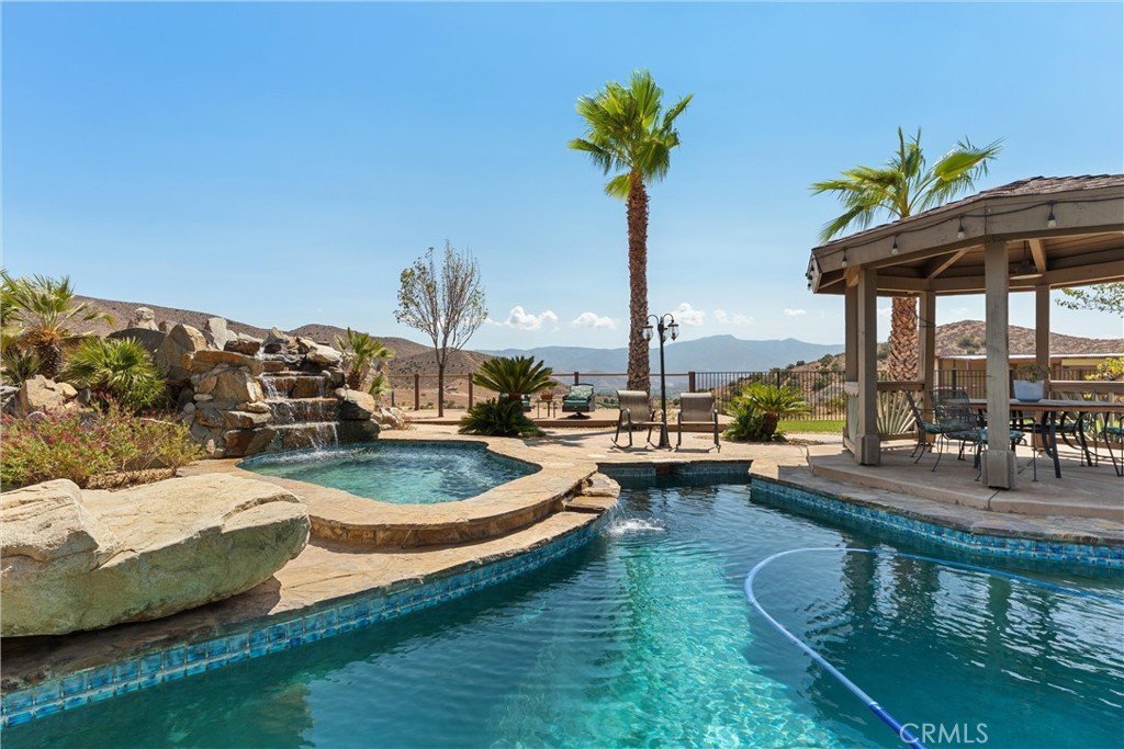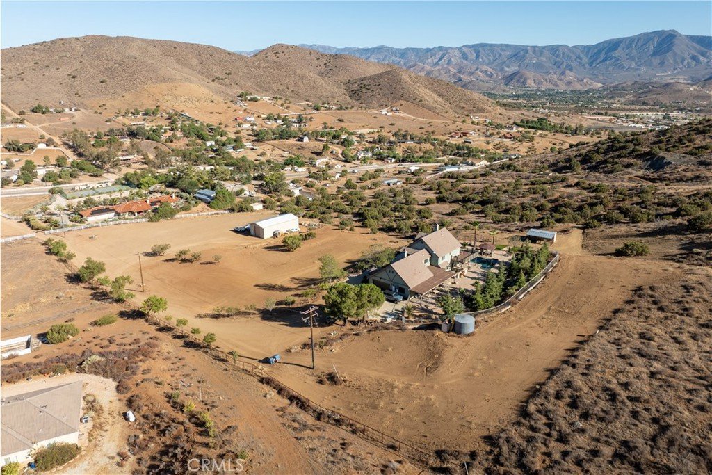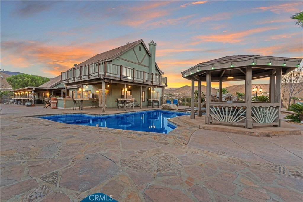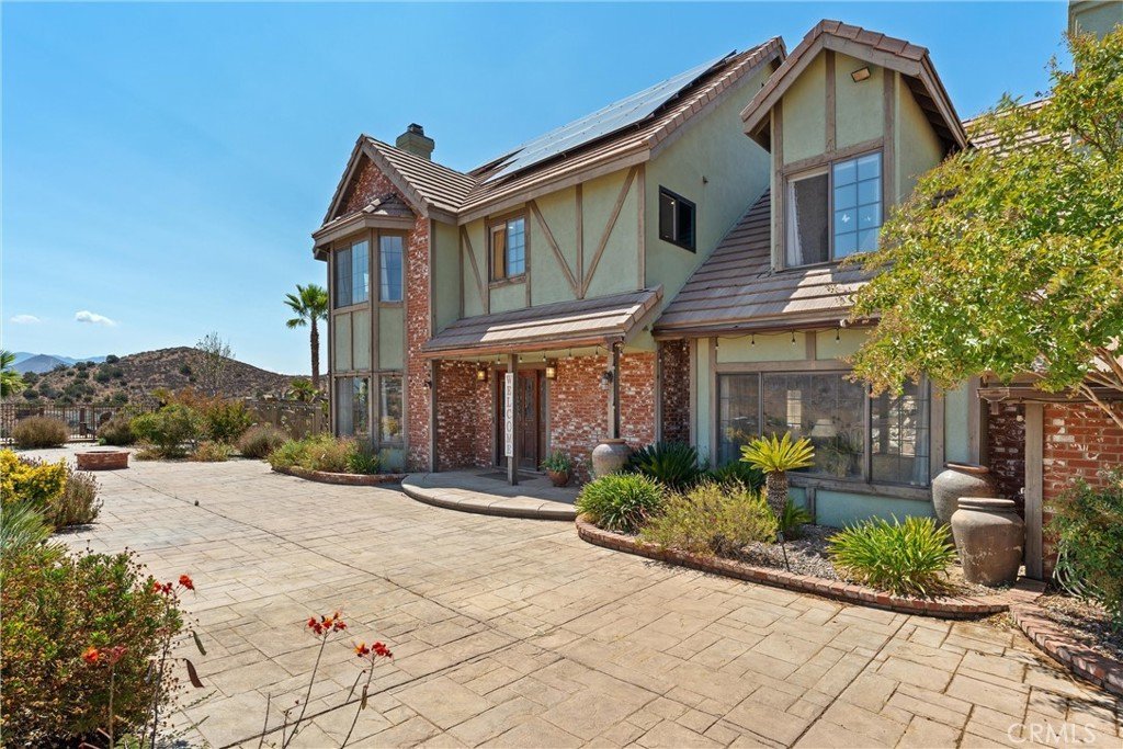 Over 5 acres of private grounds with 365 degree sweeping views of the golden California foothills. Safe and secluded, this elegant property can be your forever home, a private party location, or your equestrian estate. Located in upscale Acton, the elevated hillside terrain affords panoramic views with soft morning sunrises and stunning red sunsets. The 3194 s/f home features large picture widows and, during the day, sunbathed light in every room. With no streetlights nearby, you'll see the night sky filled with millions of stars and hear nothing but the peaceful quiet. Enjoy these breathtaking views with morning coffee or afternoon cocktails on the (12x60) deck overlooking Acton, or on the second-story wrap-around balcony! The professionally landscaped yard includes lush desert scape, mature pine trees, massive boulders, and a rock waterfall built into the hillside. These encircle a huge, finished outdoor area with heated pool, spa (seats 14 comfortable), custom built-in barbecue, and six built-in high-top tables for that elegant wedding reception, family reunion, or holiday event. The outdoor sound system and cozy fire pit will bring a warm ambience to the chilly evenings. The elegant cobblestone driveway welcomes you to the home's expansive front door and cozy wood beam and brick façade. Inside are formal and family living areas, five spacious bedrooms, four baths (large bed and full bath downstairs for guests), each of which include windows or doors that open to the magnificent views and office leads to the stunning wrap-around balcony. The newly renovated master ensuite boasts a gorgeous stand alone tub, walk in shower with floor to ceiling marbled tile. Need more space? There is a huge walk-in attic (29Lx15W) A 30x60 workshop with bathroom inside; also a 200 amp panel with 50/30 amp RV hook ups. Have horses? There's room for them too! 8x24 chicken coop and 20xx24 chicken run. Tesla solar system and back up battery. Private well 6k gal. tank and MUCH MORE!