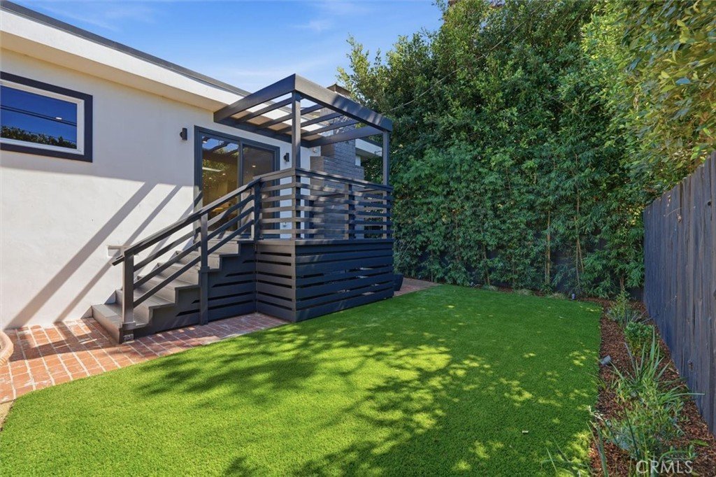 The home embraces the best of Southern California living with easy indoor-outdoor flow. The living room opens to a deck overlooking the backyard, ideal for morning coffee or evening gatherings. Just below, the private yard offers a comfortable seating area, space for a fire pit, and low-maintenance turf for easy outdoor living. Smart Wi-Fi landscape lighting enhances both the front and rear of the property, creating a welcoming setting day or night.
