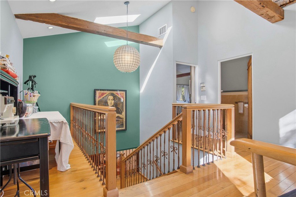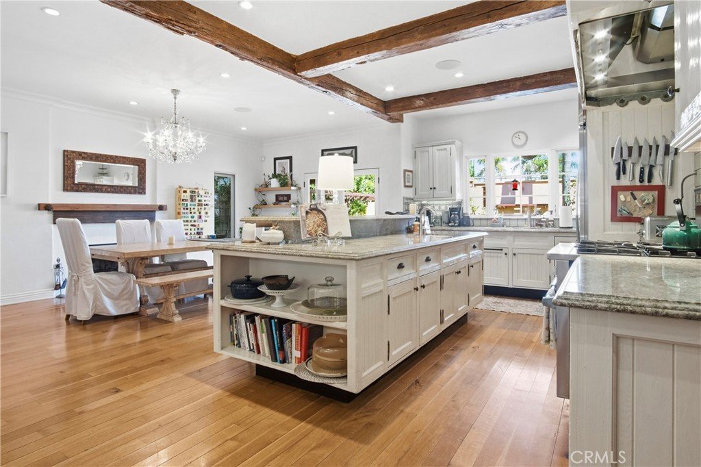 Don't Miss This one: Large lot, pool, spa, yard, and views! Perched atop Grand View Blvd, this custom-built artist's estate sits on just under a 10,000 sq ft lot. Two-story main home is California-Spanish style with mission tile roof. Across the salt pool is full sized Guest house and Garage/Studio. The main home has 4 bedrooms and 5 bathrooms, including a spacious upstairs primary suite with two patio balconies facing ocean and mountains including a wood burning fireplac. California-spanish charm throughout with huge reclaimed wood beams and doors, multiple decks, and seamless indoor–outdoor flow. The foyer opens to a living room with Moroccan-tile fireplace, leading to a family room, dining room, and open cook's kitchen with center island, custom tilework, and cabinetry. Three additional bedrooms and 3 bathrooms on the main level. The entertainer’s backyard includes a brick pizza oven, large patio, yard, and saltwater pool/spa. The guest house with kitchen and bath sits below a rooftop viewing deck offering nearly 360-degree views of Mar Vista from the Hollywood Sign to the ocean. Truly, a one-of-a-kind property.