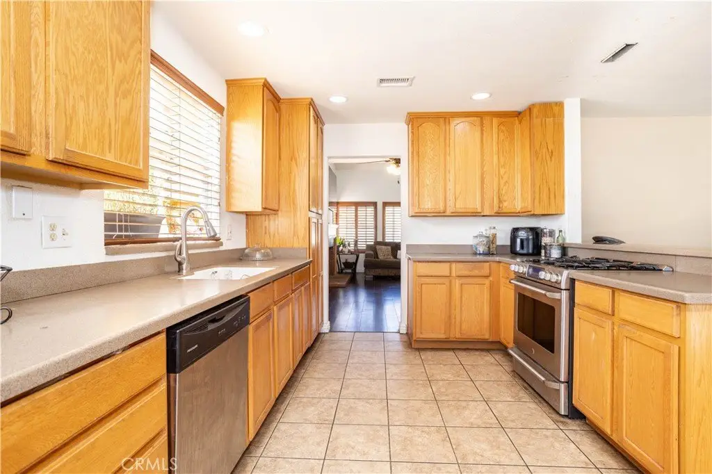 This beautiful home is nestled at the end of a quiet cul-de-sac in a great Palmdale neighborhood, and as soon as you step inside you’ll immediately recognize the owner’s true “Pride-Of-Ownership.” Here are just a few of its many other fine features: The custom front door with oval lead glass insert and matching side panels opens to a flowing 1,995 square foot open concept floor plan that is in “Move-In-Condition” with