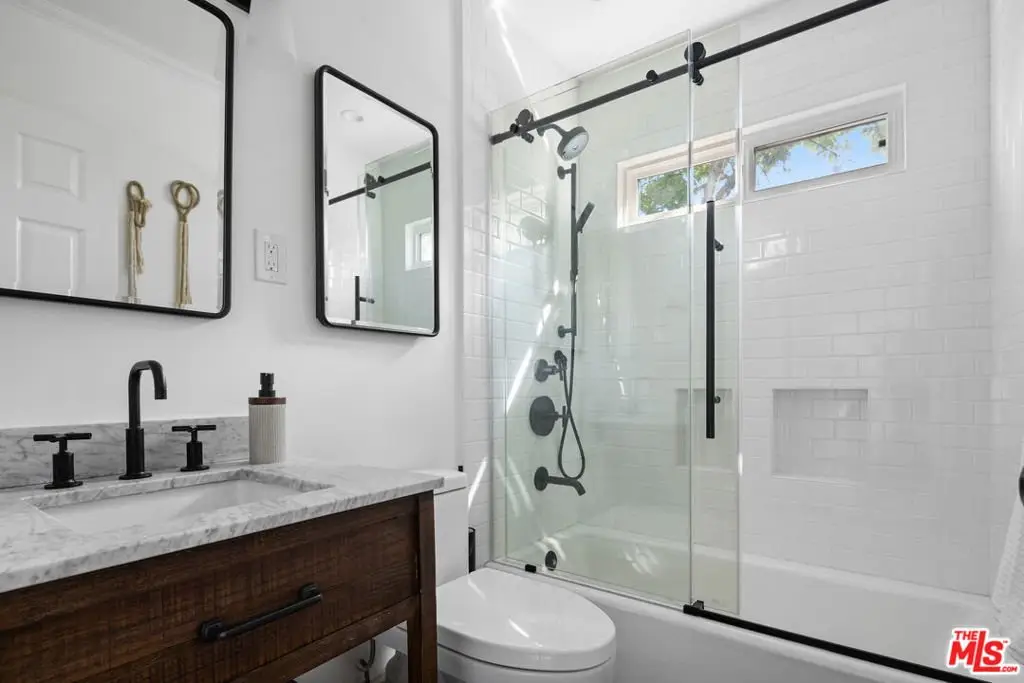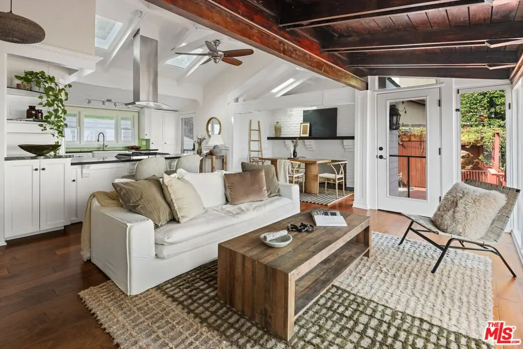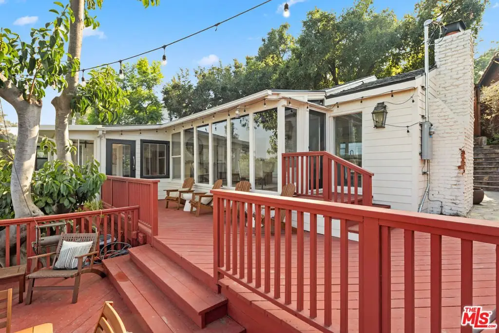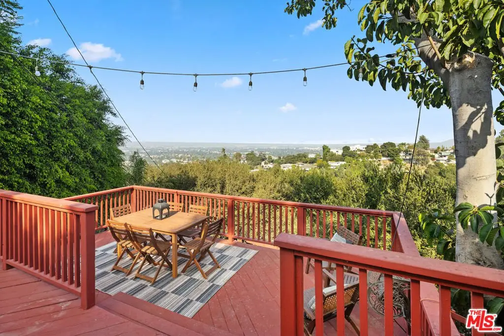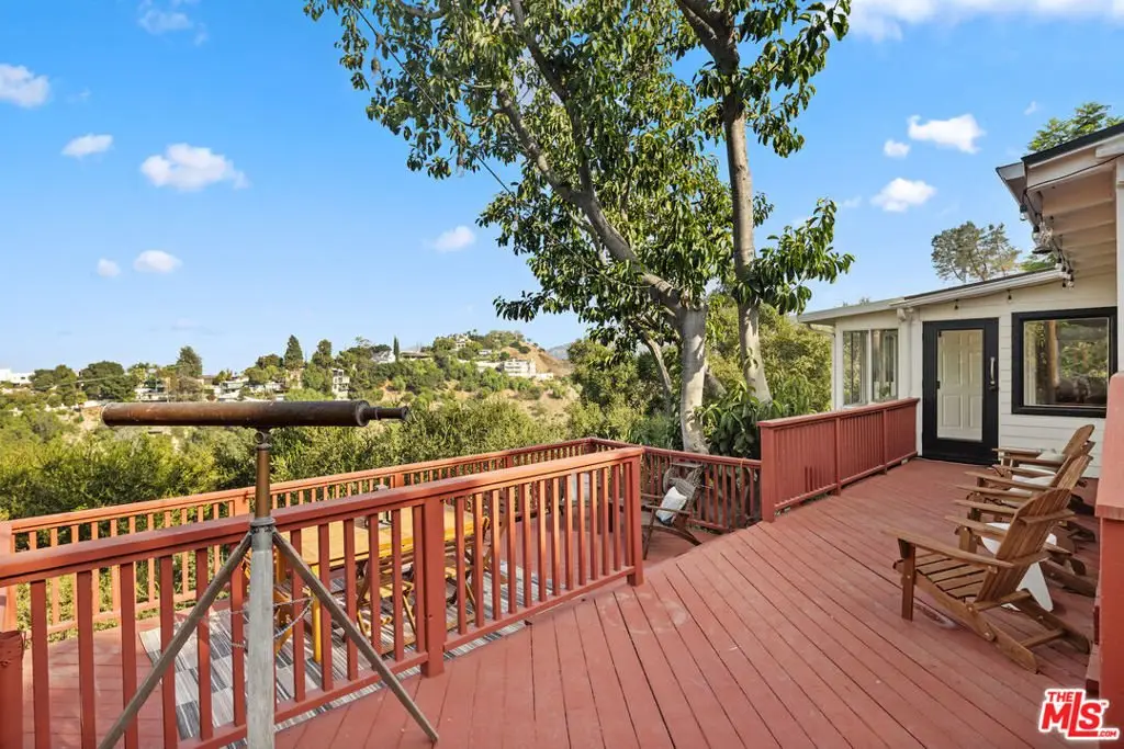 Nestled atop the prestigious hills of Studio City, this enchanting home offers a glimpse into Hollywood's storied past. As you enter through the Clear Redwood gated fence, you are transported to a bygone era as the fifth residence in the iconic Sportsmen's Lodge collection, a landmark that has welcomed silver screen legends since the 1880s.This beautifully renovated home retains its original charm, seamlessly blending mid-century modern design with contemporary comforts. The chef's kitchen is a culinary dream, featuring custom cabinetry, sleek black quartz countertops, Viking appliances, and strategically placed skylights. It flows effortlessly into an expansive great room, where reclaimed wood ceilings add a touch of rustic elegance, complemented by an open-air concept dining nook.The home comprises three thoughtfully designed bedrooms and two luxurious baths, with the primary suite offering stunning views of Wilacre Park and the distant Tujunga Canyons. Floor-to-ceiling windows flood the home with natural light, enhancing the sense of seclusion with no neighbors in sight, front or back.Adding to the home's unique character are two 150-year-old Indonesian gates, showcasing exquisite craftsmanship. Ancient Oak trees, Hudson Bay trees, and other indigenous flora envelop the property, creating a private, serene oasis reminiscent of a high-end Four Seasons treehouse. The exterior boasts 5,000 sq.ft. of multi-layered deck space, adorned with high-end, low-maintenance turf. From here, the cinematic views stretch from Studio City to Glendale and Burbank, rivaling those from Mulholland Drive. Despite its tranquil setting, the home is just a 5-minute drive from Ventura Blvd, providing easy access to grocery stores, shops, and more.Experience the perfect blend of history, luxury, and convenience in this extraordinary Studio City residence.
