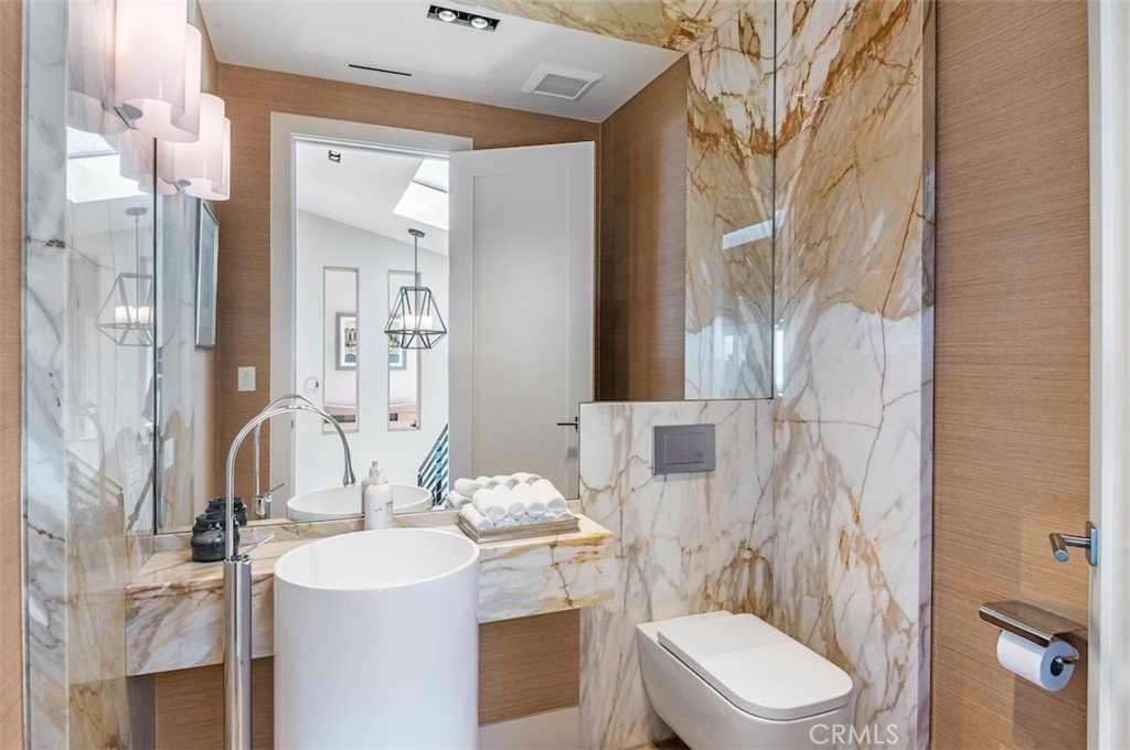 The residence functions as a private sanctuary, offering five bedrooms and nine bathrooms outfitted with elite fixtures from Gessi, Graff, and Axor. The primary suite is a masterclass in luxury, boasting pure white marble walls and Calacata floors. Wellness is central to the design, with a comprehensive spa including an all-cedar dry sauna, steam room with rain shower, massage room, and a soaking tub that transitions to an outdoor shower. Modern convenience is integrated through a laundry chute, a dumbwaiter, and a dedicated library/office located in a separate barn to preserve the sanctity of family life. Outside, the property captures 270-degree panoramic views stretching from Malibu through Los Angeles all the way to Long Beach Harbor, creating an organic flow between the high-design interiors and the breathtaking landscape. This is a home built with conviction, prioritizing craftsmanship, history, and the simple joy of a life well-lived.