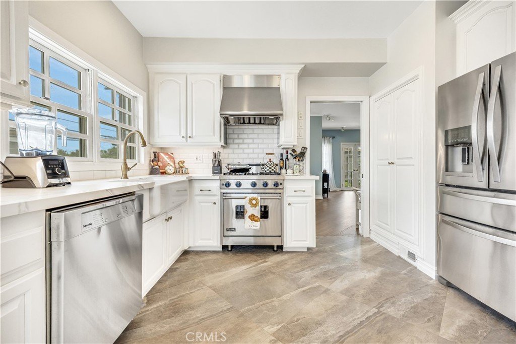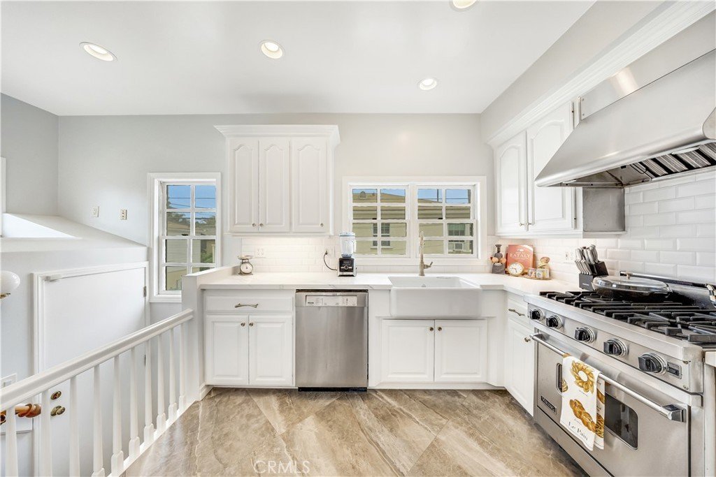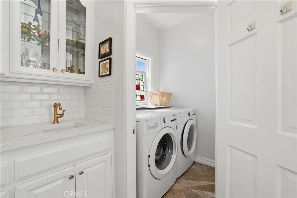 The thoughtfully designed floor plan places the two bedrooms on opposite ends of the home, offering both luxury and privacy. The upgraded kitchen showcases quartz countertops, a farmhouse sink, custom cabinetry, and newer appliances—blending classic design with modern convenience.