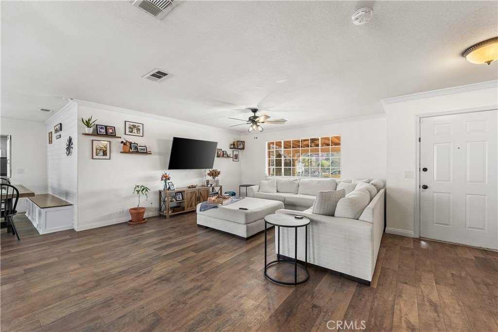 The home offers a spacious layout with a large dining room ideal for gatherings, as well as a generously sized primary bedroom. Additional features include a 2-car garage and indoor-outdoor flow to a large backyard patio.