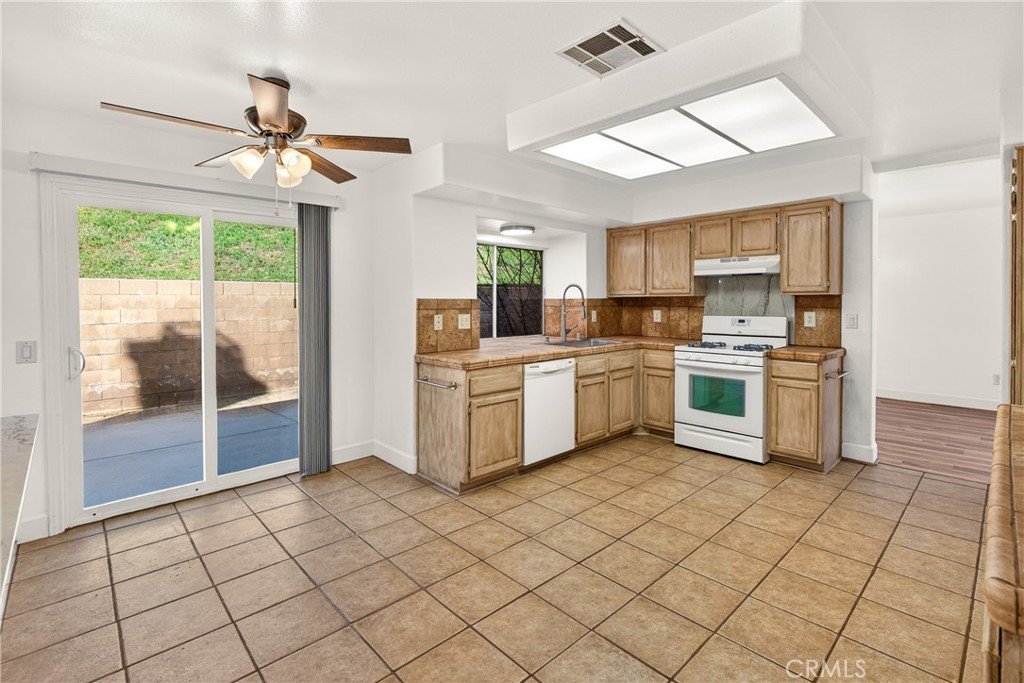 Additional highlights include central heating and brand-new air conditioning system, vaulted ceilings, tile and wood flooring throughout, attached garage and driveway parking, private backyard with patio access.