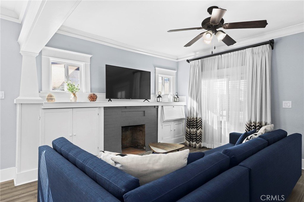 Proudly introducing this beautifully updated California bungalow in the Exposition Park neighborhood. This 3-bedroom, 1-bath residence offers 1,336 sq ft of thoughtfully designed living space that perfectly blends classic charm with modern upgrades. Upon entering, you’re immediately welcomed by engineered hardwood floors and a desirable open-concept layout that seamlessly connects the living room, dining area, and kitchen—ideal for everyday living and entertaining. The living room features a modern fireplace, ceiling fan, and custom built-in shelving, creating a warm yet contemporary atmosphere. The kitchen is a standout, showcasing quartz countertops, custom cabinetry, a farmhouse sink, stylish tile backsplash, and stainless steel Samsung appliances. A conveniently located stackable washer and dryer add to the home’s functional appeal. The bathroom is beautifully designed with a glass-enclosed shower, designer tile work, sleek modern vanity, and floating shelves—offering a spa-like experience. All three bedrooms continue with the engineered wood floors and have a spacious appeal that flows perfectly with the home layout. Outside, the property continues to impress. Enjoy drought-tolerant front landscaping, a long driveway equipped with an EV charger and shade sails leading to the garage. The large 6,658 sq ft lot features an expansive backyard that features artificial grass, a quality pergola, and charming café lighting—perfect for gatherings or relaxing evenings outdoors. Ideally located just moments from USC, Leimert Park, and Exposition Park—home to the Natural History Museum, California Science Center, the highly anticipated George Lucas Museum of Narrative Art, and major sporting venues including BMO Stadium and the iconic LA Memorial Coliseum, which will host the 2028 Summer Olympics opening and closing ceremonies.