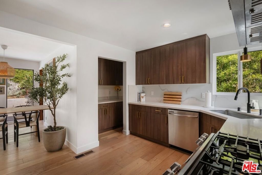 3991 Prospect Avenue is a thoughtfully designed 3 bedroom, 2.5 bathroom home offering the kind of livability that is hard to find in Los Feliz. The soaring roofline and clerestory windows flood the living area with natural light and give a distinct mid-century Palm Springs vibe. The floor to ceiling windows and patio sliders create the quintessential California indoor/outdoor flow, and the large back patio provides all the opportunities for entertaining. When you need a private moment, steal away up the steps to the treetop dining platform where you can relax and take in the sweeping views of the surrounding hills. Located in one of the most sought-after school districts in Los Feliz and steps from all the shops and dining on Hillhurst, the Greek Theater, Griffith Park, and the iconic Hollywood sign.