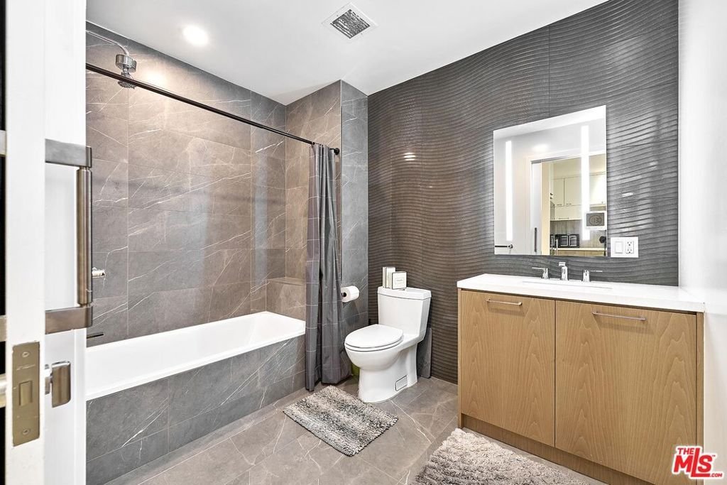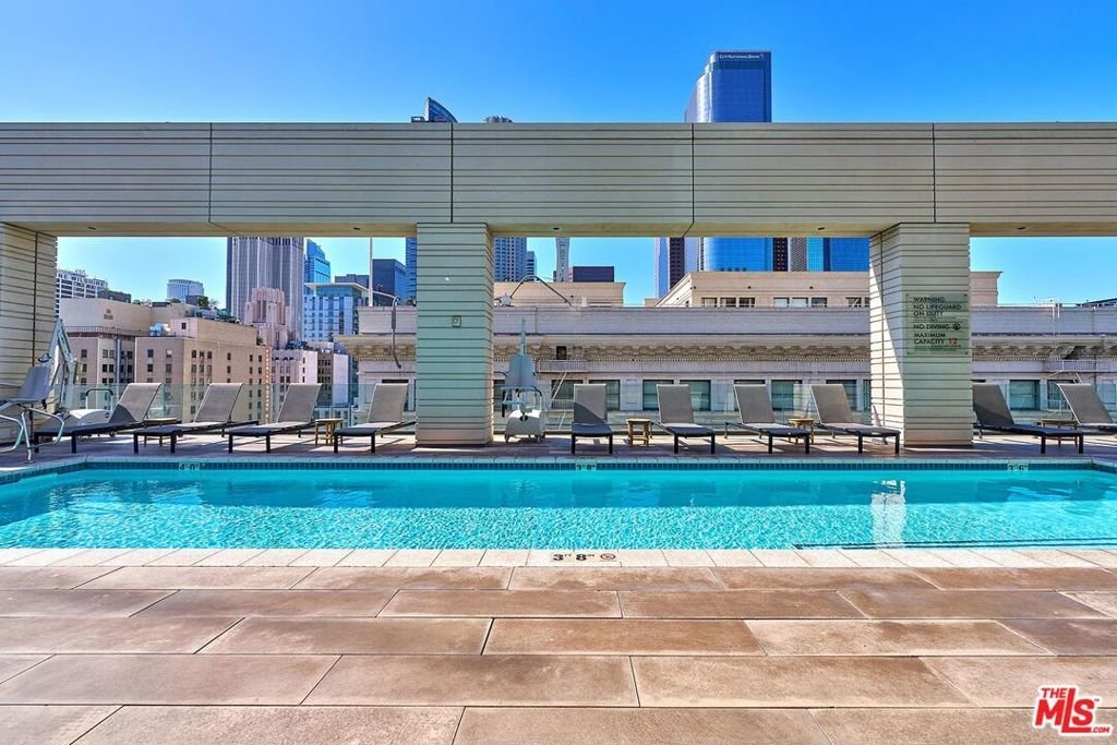 Discover sophisticated downtown living at Perla, where this stylish 1-bedroom plus den, 2-bath residence spans 1,039 sq ft on the 8th floor. Expansive floor-to-ceiling windows flood the home with sunlight and showcase impressive cityscape views.The open-concept layout emphasizes comfort and flexibility the den easily converts into a home office or creative space. A modern kitchen offers sleek cabinetry, quartz countertops, and stainless-steel appliances (including a dishwasher, microwave, and disposal). In-unit laundry adds convenience to everyday life. Residents at Perla enjoy an exceptional amenity collection: 24-hour concierge and security, a state-of-the-art fitness center, pool, elevator access, and secure covered parking with one assigned space on Level B. The HOA dues are $941 per month. Set in the Historic Core/Broadway District, the location puts you moments from Grand Central Market, the Bradbury Building, MOCA, Walt Disney Concert Hall, and easy public transit. This residence offers a seamless blend of modern luxury and downtown energy the perfect retreat in the heart of Los Angeles.