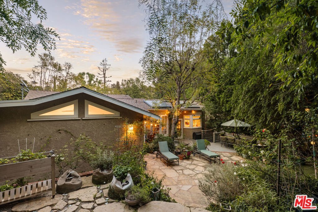 Gorgeous storybook traditional on a quiet lane off Valley Vista, within the highly regarded Dixie Canyon Elementary School district. Set among beautiful tree-lined streets with easy access to the area's beloved dining and shopping along trendy Ventura Blvd. Step inside to rich espresso hardwood floors, tray ceilings, graceful arched doorways, and elegant base molding that add warmth and architectural character throughout. Anchored by an inviting fireplace, the chic living room evokes a designer treehouse feel, with a large bay window framing lush greenery and filling the space with natural light. A thoughtful floor plan offers effectively two primary suites, while a third bedroom and dedicated office provide exceptional flexibility for work-from-home professionals or growing families. The backyard is where life unfolds surrounded by a veritable grove of lush trees and foliage, creating a sense of serenity and privacy. Multiple vignettes invite romantic moments, quiet reflection, or sophisticated entertaining reminiscent of a five-star retreat. The ambiance is effortlessly relaxed, with room to accommodate a pool for both immediate enjoyment and future potential. A bonus space, accessed through the side yard, is ideal for yoga, a work space, or a creative studio. A place to slow down, settle in, and truly feel at home.