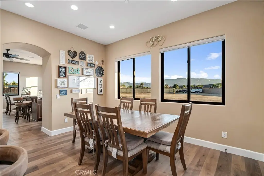 ***LIVE BEAUTIFULLY*** Luxury Desert Retreat with Breathtaking Mountain Views. Built with all the finest materials and details throughout. (COST TO BUILD exceeded $1,853,000). Nestled on a fully fenced 2.5+ acre lot, this nearly 4,000 sq. ft. estate offers the perfect balance of privacy, elegance, and modern comfort. Built In 2021, with 5 spacious bedrooms and 4.5 bathrooms, every detail of this home has been designed for both luxury living and effortless entertaining. Step inside to discover a gourmet chef's kitchen, featuring dual islands, Thermador appliances, custom cabinetry, a 6-burner stove with pot filler, and ample space to create culinary masterpieces. The open design flows seamlessly to living areas filled with natural light through Anderson doors and windows, while motorized blinds provide convenience throughout the home. The primary suite is a true sanctuary, boasting direct backyard access, a private wet bar, dual walk-in closets with barn door accents, and a spa-inspired bath with a therapy jetted tub and a stone-tiled steam shower with dual showerheads. Car enthusiasts and hobbyists alike will love the oversized 4-car garage, offering 1,200 sq. ft. of space. Practical upgrades include regular gas (no propane) and a remarkably low $110/month water bill, making this home as efficient as it is luxurious. Outside, the expansive property provides plenty of room to enjoy the tranquility of the desert, all set against a stunning backdrop of panoramic mountain views. This one-of-a-kind custom built estate is a must see!