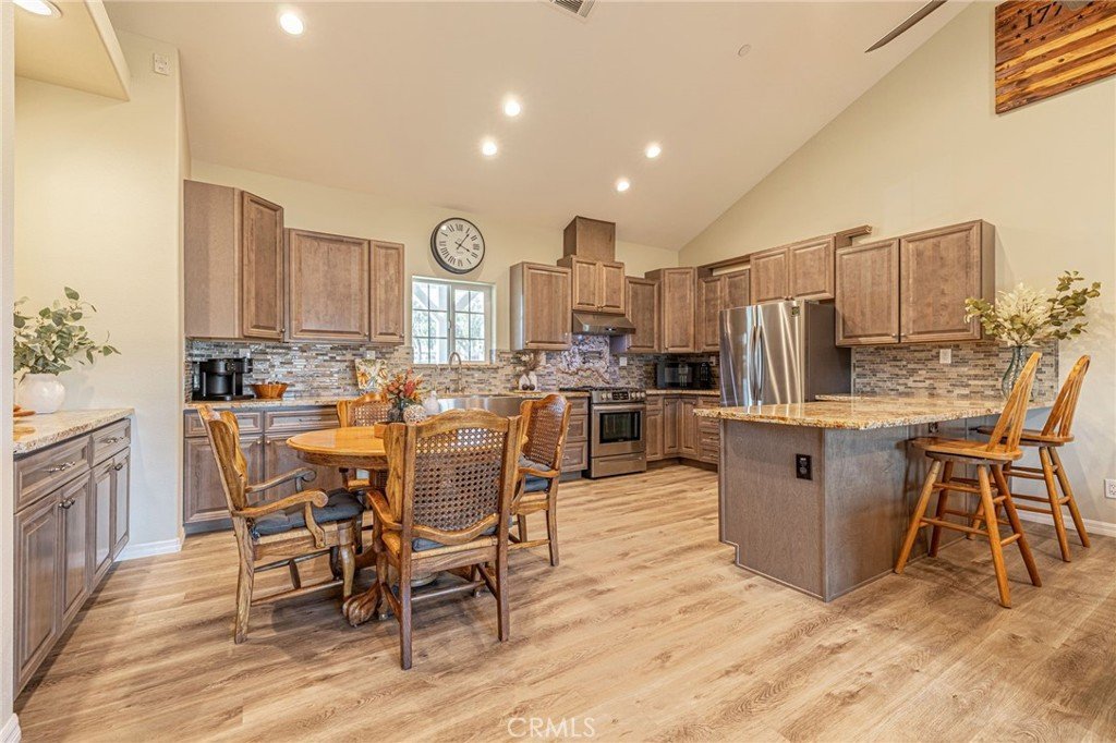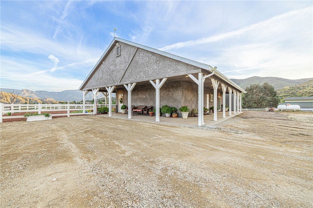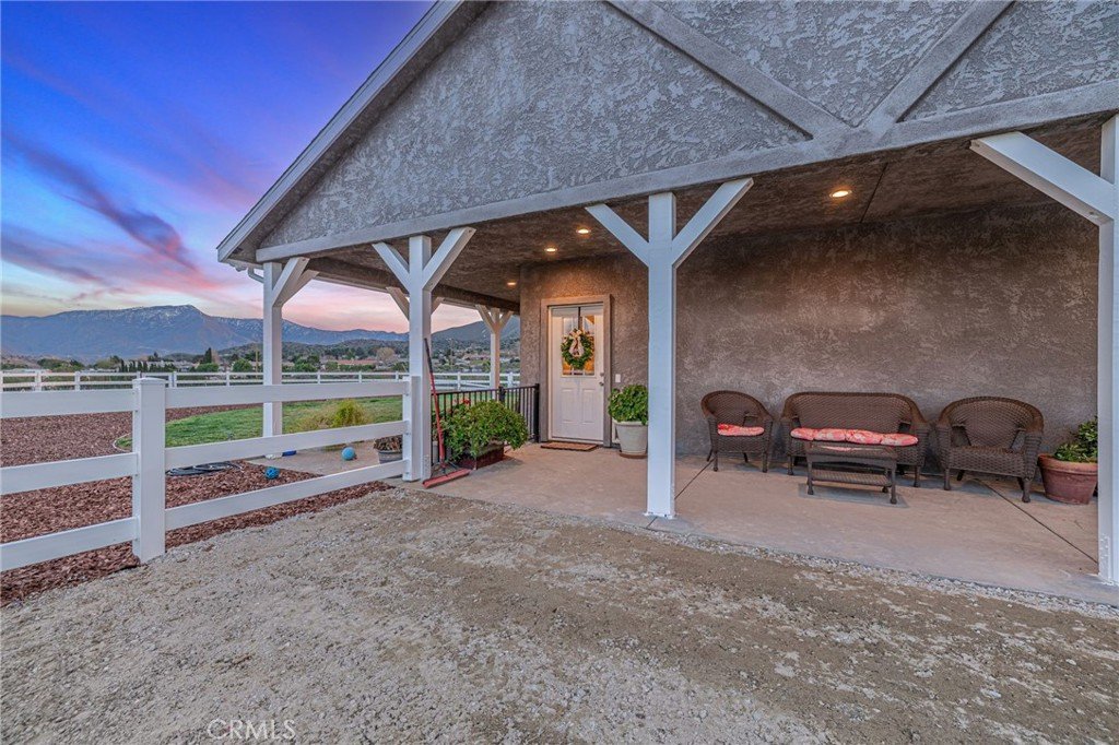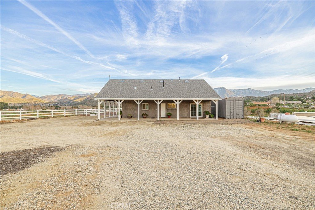 Welcome to your private country retreat showcasing stunning mountain views and tranquil surroundings. This newly built, meticulously maintained single-story home offers the ideal combination of rural charm and modern convenience. A welcoming wraparound covered porch creates the perfect setting for morning coffee or relaxing sunset evenings. Inside, the open-concept floor plan features soaring ceilings, recessed lighting, and wide-plank laminate flooring throughout, creating a bright and cohesive living space. The spacious kitchen is designed for both everyday living and entertaining, complete with rich wood cabinetry, granite countertops, stainless steel appliances, a custom tile backsplash, and a large peninsula with bar seating. The adjoining dining area is filled with natural light, making it ideal for gatherings. The generously sized primary suite offers peaceful outdoor views and private patio access, creating a light and serene retreat. An additional well-proportioned bedroom provides flexibility for guests, a home office, or hobby space. Step outside to enjoy fenced areas and usable land with endless possibilities—bring your animals, RV, and recreational toys, or design your dream outdoor oasis. A convenient dog washing station adds a thoughtful touch for your furry companions. Enjoy the privacy of country living while remaining just a short drive from town amenities. Move-in ready with scenic views, modern finishes, and room to grow—this is the one you’ve been waiting for.