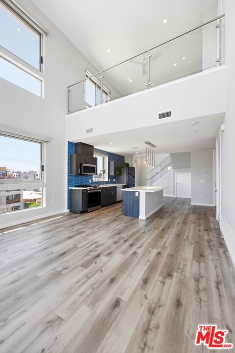 Penthouse Living Elevated. Discover a rare 1,930 sq. ft. two-level penthouse in an intimate 67-unit boutique building, ideally positioned in one of the Westside's most coveted enclaves. Designed for both comfort and impact, this light-filled residence features walls of glass and sweeping views from nearly every room. Perched on the top floor with only one shared wall, the home offers exceptional privacy along with 2 primary suites and 3 bathrooms. The open-concept living and dining areas flow seamlessly to a private balcony, creating effortless indoor-outdoor living. At the heart of the home, the chef's kitchen showcases quartz countertops, new appliances, custom cabinetry, and designer finishes. The main level includes a spacious ensuite bedroom with a beautifully appointed bath and custom walk-in closet, along with a powder room, washer/dryer closet, and abundant storage; ideal for guests or flexible living. Upstairs, the primary suite serves as a true retreat, complemented by a private loft or office with stunning sunset views over the Santa Monica Mountains. The spa-inspired bath features a soaking tub, separate shower, dual quartz vanities, refined finishes, and a custom walk-in closet. Additional highlights include a split HVAC system with independent climate control on each level, automatic window shades, and premium fixtures throughout. Residents enjoy a full suite of amenities, including weekday concierge service, a furnished lobby, bike storage, coffee bar, fitness center, clubhouse, pool, courtyard with modern lounge seating and BBQs, plus complimentary high-speed internet and DirectTV. Located in the heart of Marina del Rey, just moments from Venice Beach, Abbot Kinney, top dining, shopping, Alla Park, and LAX, this home captures the essence of sophisticated coastal living.