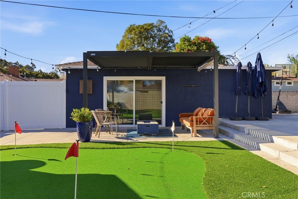 The expansive backyard is an entertainer's dream, complete with a covered patio, new pool and spa, concrete deck, putting green, and ample space for gatherings or peaceful outdoor living. Additional features include washer and dryer, range/oven, storage shed, and public sewer connection.