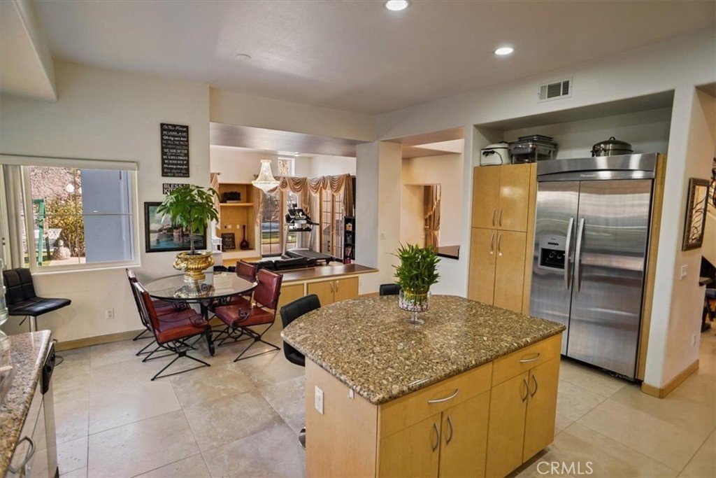 The thoughtfully Designed open-concept floor plan features both a Formal Living Rm, Formal Dining Rm and a Family Rm which Flow Effortlessly beneath Voluminous Ceilings, Ideal for Grand-scale Entertaining and two Elegant Fireplaces. Rich finishes include Marble and Wood flooring. A Gourmet Kitchen with Granite Countertops, Stainless Steel Appliances, a Commercial-Style Range with Hood, Built-in Refrigerator/Freezer, Center Island and a Breakfast Room.