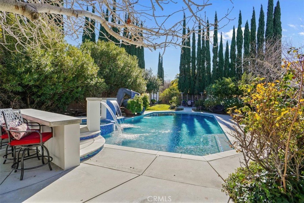 Entertain year-round in the Resort-style Sparkling Pool & Spa with Waterfall features and and a Waterslide. This Backyard is Designed for both Relaxation and Entertaining. Several Expansive Patio areas, Lush Landscaping, a Built-in BBQ, and Decorative Lighting, a True Private Oasis.