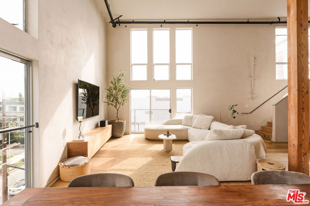 A rare, Architectural Digest featured penthouse loft offering the ultimate blend of beach, city, and loft living. This top-floor corner unit with only one common wall features soaring 17-foot ceilings, dramatic city views, and a light-filled two-story open floor plan designed for both everyday living and creative expression.The loft's transformation includes over $225,000 in bespoke upgrades, highlighted by Kamp Studios' signature natural, eco-friendly matte plaster throughout, including a custom plaster finish for the kitchen cabinetry. Handcrafted wood and brass elements by Cooper Reynolds define the space, from the statement kitchen island to custom ladder. The kitchen is a true centerpiece, featuring custom Italian cabinetry by Aria Design, Grey Atlantis Stealth quartz slabs, artisanal detailing, and a full suite of top-of-the-line Viking appliances, including a 48" all-gas professional range and custom-panel refrigerator.Curated designer lighting and furnishings include Noguchi Akari light sculptures, handmade wall lighting by Cuff Studio, custom bar stools by Thomas Hayes, and a one-of-a-kind art installation by Hannah Polskin. Adding a personal touch, the owner designed a bespoke boucle sofa, "Freya," now part of Nathan Anthony's permanent collection. Ideally located just a 2-minute walk to Villa Marina Marketplace, offering Equinox, AMC Theater, Gelson's, and an array of shops and restaurants. The building also features a Kelly Wearstler designed courtyard, along with a gym, pool, spa, secured guest parking, and two secured underground parking spaces.A truly special penthouse loft where elevated design, privacy, and walkable coastal living converge.