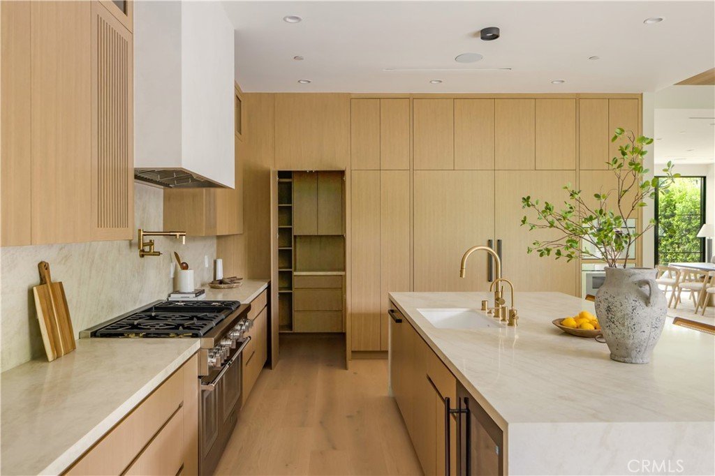 Newly built architectural retreat in the heart of Studio City’s coveted Beeman Park neighborhood, 4245 Bellaire Ave blends warm contemporary design with elevated craftsmanship rarely found in today’s spec market. This spanning residence showcases soaring ceilings, wide plank oak floors, custom millwork, designer lighting, and walls of glass that flood the home with natural light. The chef’s kitchen is a true showpiece with bespoke cabinetry, custom kitchen island, premium appliances, and seamless connection to expansive living and dining spaces designed for effortless entertaining. The stunning primary suite offers vaulted wood ceilings, fireplace, private terrace, spa inspired bath, and a boutique style custom closet. Outdoors, a private resort style yard features pool, BBQ, lounge areas, and mature hedging for exceptional privacy. Located within the sought after Dixie Canyon Community Charter School District, moments from Beeman Park, Ventura Boulevard, Erewhon, Sportsmen’s Lodge, and easy Westside access, this is turnkey luxury living in one of Studio City’s most desirable pockets.