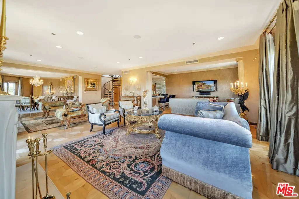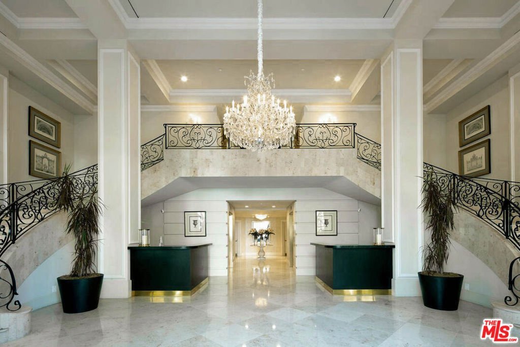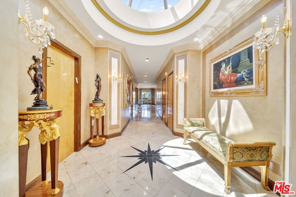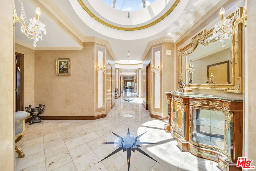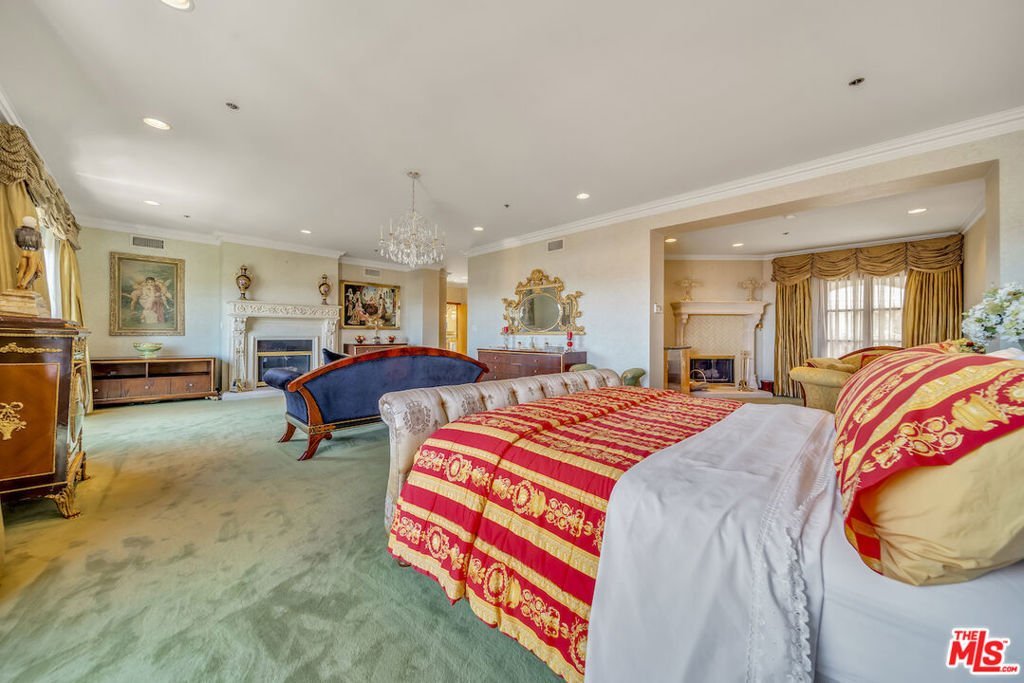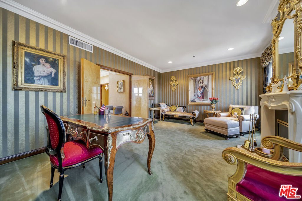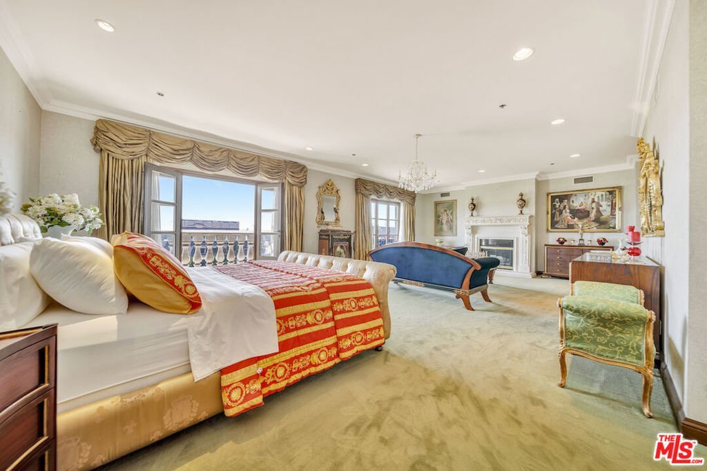 This regal penthouse in the iconic Le Faubourg building, which has been home to celebrities, offers over 5,300 sq ft of impressive unobstructed panoramic views from Beverly Hills to Downtown LA. This penthouse offers privacy and high security. 6 bedrooms, 7.5 baths, 4 fireplaces, a large chef's kitchen, formal living room with wet bar, formal dining room, library, separate service entrance and 3 dramatic pyramid skylights, flood the penthouse with natural light. The oversized primary suite includes two fireplaces, a sitting area, large walk in cedar closets and an opulent marble bath. French doors lead to multiple balconies, while a spiral staircase leads to the private rooftop, spanning over 700 sq ft, overlooking Beverly Hills and beyond. Full-service luxury begins when you pull into the driveway and are greeted by an onsite valet. Additional amenities include a large private storage room, 24-hour doormen, concierge, security, pool/spa and gym. Moments from Rodeo Drive, Sunset Blvd, and everything Beverly Hills has to offer. A rare opportunity to own this landmark Beverly Hills Penthouse in the world- famous 90210.