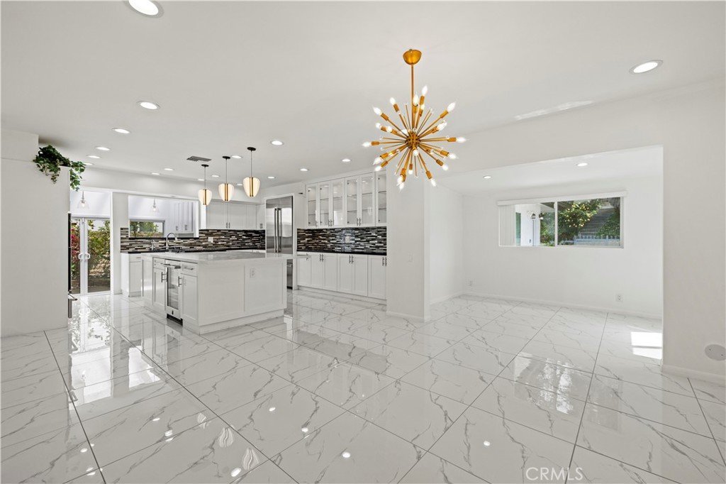The gourmet chef’s kitchen is a true centerpiece, featuring top-of-the-line appliances, custom cabinetry, and a large center island ideal for gatherings and culinary creations. Adjacent to the kitchen is a stylish formal dining room with floor-to-ceiling windows that flood the space with natural light and showcase the beautiful surroundings.