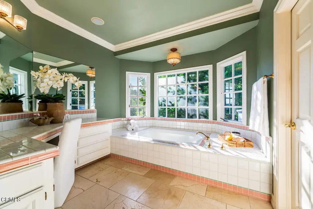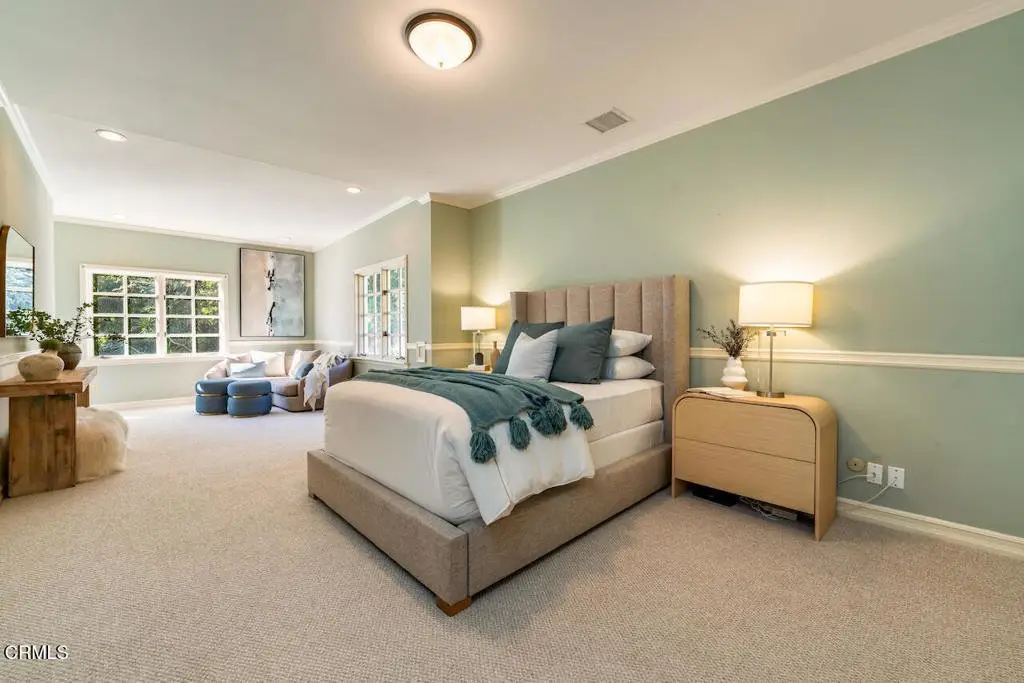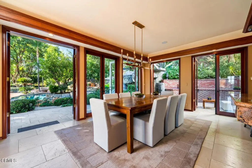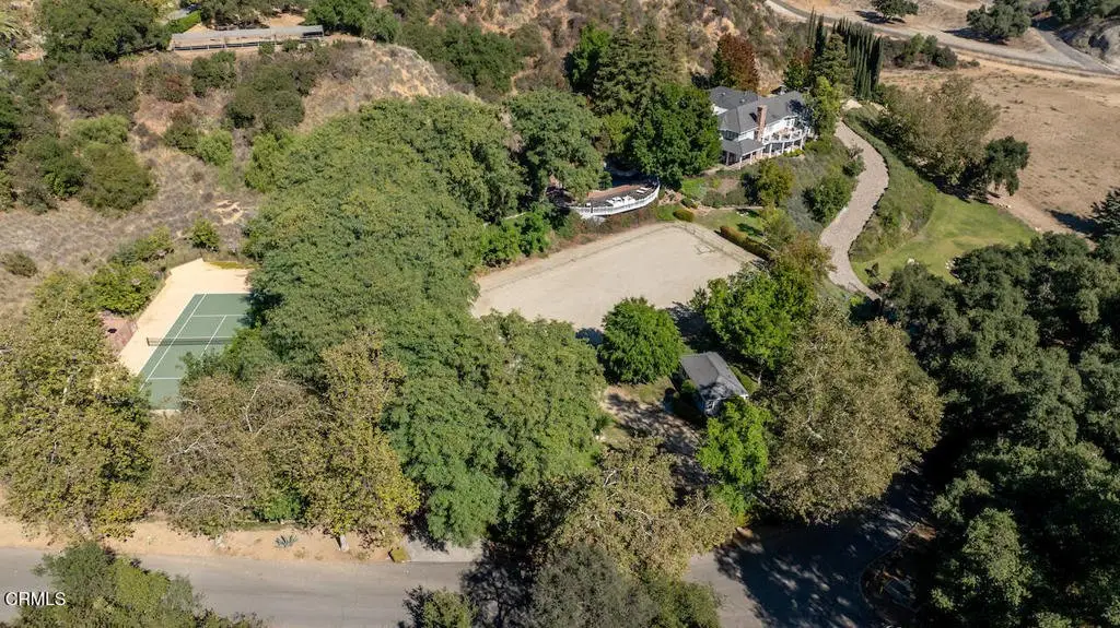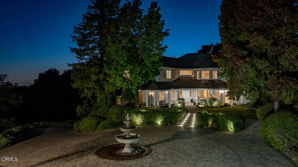 Nestled within the exclusive Bradbury Estates, a 24-hour guard-gated community renowned as one of California's most distinguished addresses, this exquisite home offers five bedrooms and six bathrooms designed for luxurious comfort and lifestyle. As you arrive, you're greeted by meticulously manicured landscaping and a serene ambiance that immediately sets the tone for the grandeur within. Custom-built by Mur-Sol Construction, this remarkable estate rests on nearly 5 acres and showcases exceptional craftsmanship, architectural precision, and thoughtful design.The main residence spans 6,579 square feet across two levels, offering an inviting yet sophisticated layout. The grand foyer welcomes you with soaring ceilings, a graceful curved staircase, and an abundance of natural light that fills the home with warmth. At the heart of the home lies a gourmet chef's kitchen, equipped with high-end appliances, a large center island, and an inviting breakfast area framed by six sets of French doors that open seamlessly to the backyard and outdoor BBQ area. Adjacent, the formal dining room provides the perfect setting for intimate dinners or lavish celebrations. The luxurious primary suite is a private sanctuary, featuring a cozy fireplace, spa-inspired bath with soaking tub, dual vanities, and a spacious walk-in closet. Expansive balconies and a covered veranda capture sweeping vistas of the surrounding hillsides and city lights, creating the perfect backdrop for morning coffee or evening relaxation. Designed for both everyday living and grand entertaining, this estate offers an array of resort-style amenities, including a stunning pool and spa with a cascading rock waterfall, multiple outdoor lounge and dining areas, and a North-South-facing professional tennis court. For equestrian enthusiasts, the property also includes a full-size riding pavilion, casita, and stables. Set amidst the tranquil beauty of Bradbury, this estate offers the ultimate in privacy, prestige, and natural splendor. Renowned for its expansive estates, scenic landscapes, and exclusivity, Bradbury embodies refined luxury and timeless elegance, harmoniously blending world-class amenities with breathtaking natural surroundings and panoramic views.