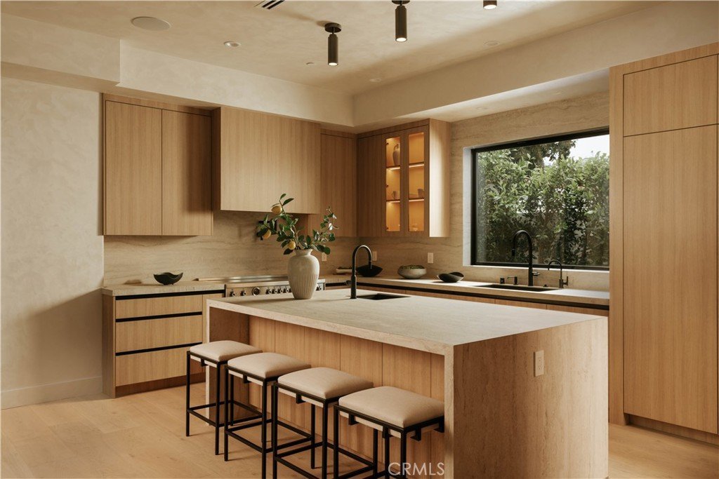 Step into refined modern luxury at this brand-new, custom-built estate located South of the Boulevard in the heart of Sherman Oaks. Featuring 6 bedrooms and 6.5 bathrooms, includes an attached ADU 1 bedroom and 1 bathroom. The main residence spans 3,885 square feet, with the ADU adding 725 square feet of additional living space. The home seamlessly blends organic textures with contemporary elegance, offering warm, inviting interiors and flawless design.The open-concept living area features custom built-ins, wide-plank oak flooring, a linear fireplace with a natural stone surround, and floor-to-ceiling sliding doors that flood the space with light and offer true indoor-outdoor flow. The gourmet kitchen is outfitted with sleek cabinetry, natural stone countertops, a statement waterfall island, and top-tier appliances designed for both function and form.Retreat to the primary suite with vaulted ceilings, a spa-like bath, and generous walk-in closet space. Each secondary bedroom is en-suite, offering privacy. A beautifully landscaped backyard with a pool and lounge area is ideal for entertaining.Located on a quiet, tree-lined street moments from Ventura Blvd's best schools, shops, dining, and cafes.