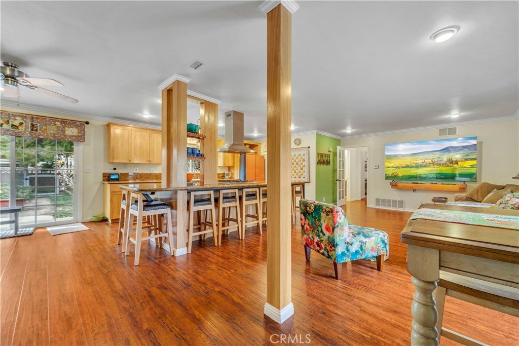 SINGLE STORY HOME WITH A WORKSHOP! This home is truly stunning and perfectly situated on a quiet cul de sac, offering timeless mid century charm and character throughout. The incredible kitchen is the heart of the home, featuring a massive center island, real hickory cabinetry with abundant storage, stainless steel appliances, and ample seating, perfect for gathering and entertaining. A formal living room with a beautiful fireplace and new vinyl flooring creates a warm and inviting space. The home offers four spacious bedrooms and three full bathrooms, with a thoughtfully designed layout that places the primary suite on its own private wing. You'll find an abundance of storage throughout, making everyday living effortless. Step outside to a dream setting with both front and back yards designed for enjoyment, including a private courtyard, mature landscaping with apple and pomegranate trees, a chicken coop, gardening boxes, covered gazebo, and a large workshop ideal for hobbies or projects. The oversized two car garage adds even more functionality, complete with 220V in both the garage and workshop, perfect for equipment, tools, or future upgrades. This home truly has it all. Call for your private showing today!