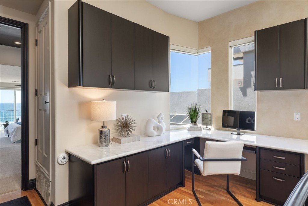 Live every day like you’re on vacation at 4308 The Strand—where the ocean is your front yard and the rhythm of the waves defines your lifestyle. Ideally located in North Manhattan Beach, this exceptional home offers a premier beachfront setting with easy access to the best of Manhattan Beach, Venice, Santa Monica, Downtown Los Angeles, and LAX. Positioned along one of the most desirable stretches of coastline, the home features world-class surf just steps away, unobstructed white-water views, and a wide sandy beach. Enjoy breathtaking sunsets and panoramic ocean vistas—from Catalina to Palos Verdes and Malibu—from multiple decks designed for seamless indoor-outdoor living. This versatile residence can function as a five-bedroom single-family home or as a four-bedroom main home with a separate one-bedroom junior ADU—ideal for guests or rental income. The home offers soaring ceilings, abundant natural light, and stunning ocean views from nearly every room. The gourmet chef’s kitchen features high-end appliances, custom finishes, and an expansive island. Additional highlights include three fireplaces, a designer vacuum elevator, custom railings, and a spacious laundry room. The lower level offers a private suite with its own bedroom, bath, kitchenette, and access to a landscaped outdoor yard—ideal for relaxing or entertaining. The property offers a three-car garage, two guest spaces, and optional permitted access to the gated El Porto lot – closed nightly for a uniquely private beach experience. A large storage room beneath the home offers flexible use, including the potential for a wine cellar. Energy-efficient features include fully paid solar panels and a Tesla Powerwall, keeping the average electric bill around $30 per month. Underground utilities have been paid off by the current owner. A rare opportunity to own a true beachfront retreat in one of the South Bay’s most coveted locations.