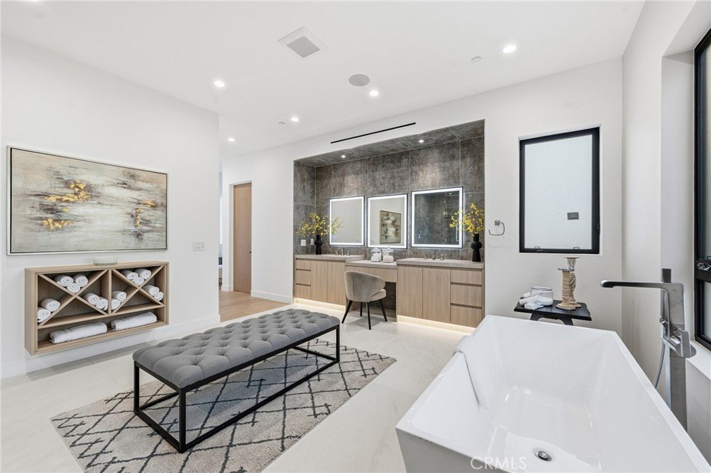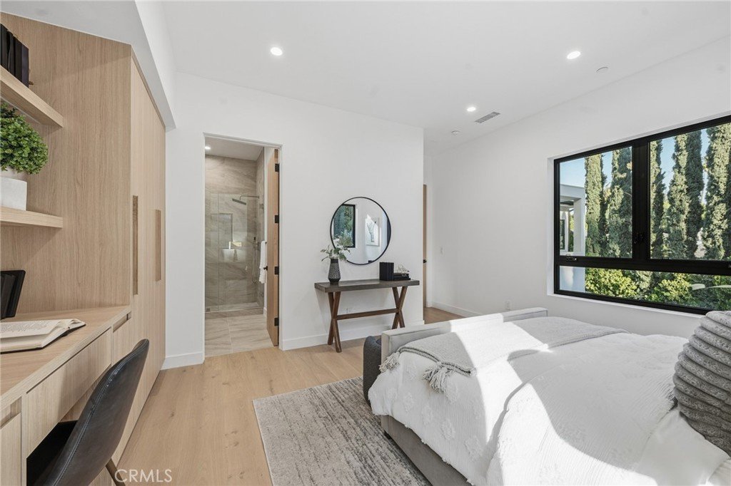Ultra-private gated Encino compound offering rare seclusion, security, and refined design on an expansive over 18,500 Sqft lot. Fully enclosed with security fencing and mature landscaping, the property delivers complete privacy from every direction while capturing tranquil valley and green nature views. From the moment you enter through the gates, the residence feels intentionally removed from the outside world quiet, serene, and thoughtfully composed. Designed by one of Los Angeles’ most respected interior designers, the approx. 5,717 Sqft home showcases soaring ceilings, abundant natural light, and an open-concept layout that balances architectural presence with warmth and livability. High-end finishes, custom carpentry, and curated materials define every space, creating a cohesive aesthetic that feels luxurious yet inviting. The floor plan offers five generously sized bedroom suites, a private office ideal for focused work, a dedicated theater, and an oversized walk-in pantry designed for daily ease and entertaining. The primary suite serves as a private retreat with spa-inspired bath, expansive steam shower, and serene outlooks framed by lush greenery. Outdoor living is designed as a true extension of the home, featuring a resort-style pool and spa with sweeping views and total privacy, fire pit, and a fully equipped outdoor kitchen with BBQ, pizza oven, cooktop, refrigerator, and temperature-controlled beverage cooler. An additional approx. 300 SF outdoor gym and storage/doghouse add versatility. Smart home technology enhances comfort, security, and efficiency throughout. A large three-car garage and gated driveway provide ample secure parking. A rare Encino offering that prioritizes privacy, design, and lifestyle where luxury feels intentional and value is found in what cannot be replicated.