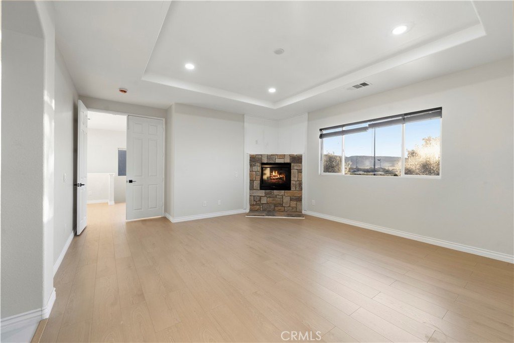 The interior includes vinyl flooring throughout and fresh paint, providing a clean and updated feel. Multiple living areas offer flexibility for everyday living and entertaining, including a cozy fireplace downstairs and an additional fireplace upstairs.