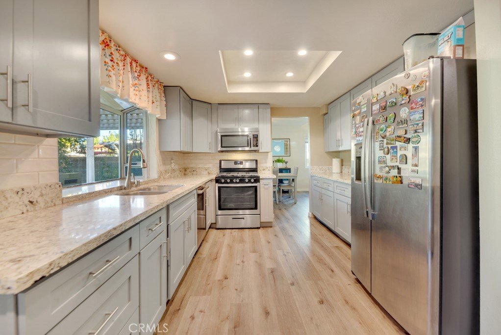 Step into this beautifully updated home, where elegance meets comfort in a thoughtfully designed space. As you enter, you’re greeted by soaring ceilings and a graceful staircase that sets the tone for the home’s warm sophistication. To your right is an expansive room — ideal for entertaining friends, creating family memories, or simply relaxing in the room’s natural light. The heart of the home features a fully remodeled kitchen, showcasing sleek finishes, premium appliances, and generous storage for effortless organization. The kitchen flows seamlessly into the open dining area, a perfect setting for family dinners or hosting gatherings. Ascend the carpeted staircase to discover three inviting bedrooms, each with ample closet storage and room to unwind. The master bedroom has beautifully upgraded bathroom flooring, adding a feel of brand-new luxury. A fourth functional room with a closet provides the ideal location for a home office, guest room, or art studio — tailored to your family's requirements. Head outside to the spacious backyard oasis, where comfort and tranquility meet. To the left, unwind in the private jacuzzi, then enjoy the lush green yard — a perfect retreat for children to play or pets to roam freely. Complete with a Tesla charger installation, upgraded flooring, and thoughtful modern touches throughout, this home perfectly blends luxury, comfort, and functionality — a true sanctuary ready to be enjoyed for years to come.