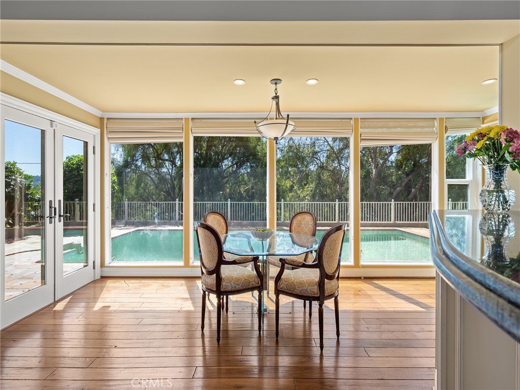 Imagine coming home to a peaceful Valmonte cul-de-sac where sunlight pours through a wall of windows, bathing the single-level living space in warm light. The open floor plan feels both spacious and inviting, centered on a living room with a fireplace that flows into a gourmet kitchen with granite counters, stainless-steel appliances, and a generous dining area—perfect for casual mornings and evening gatherings. The primary suite is a private retreat with a cozy sitting area and French doors that open to the backyard, creating a seamless indoor-outdoor connection. The en-suite bath includes a soothing jacuzzi tub for end-of-day relaxation. Outside, the yard offers a pool with child-safety fencing and a built-in BBQ. Rich wood floors, recessed lighting, and thoughtful finishes add warmth and character throughout. Enjoy the Valmonte lifestyle—close to Palos Verdes Golf Course, parks, beaches, equestrian facilities, and scenic trails—this is more than a house; it’s a place to slow down and savor everyday living.