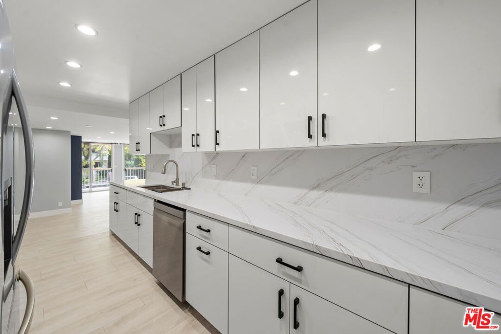 "Major price correction". Owner is motivated. Completely renovated and remodeled Front Facing unit. 1566 square feet one bedroom unit. Light and bright. Beautiful tree lined street. Top of the line appliances. Huge living room with fire place. Two car tandem poking. HOA fees include water, Trash, and basic cable. secured building with pool. This beautiful unis is also available for lease at $5,500