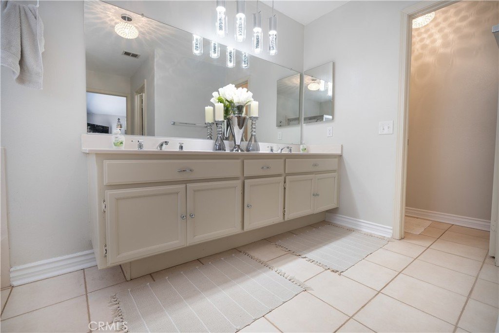 Spacious Main Bedroom with a Walk-In Closet a secondary closet, Ceiling Fan and Gas Fireplace. Main Bathroom has Dual Sinks with custom lighting & a