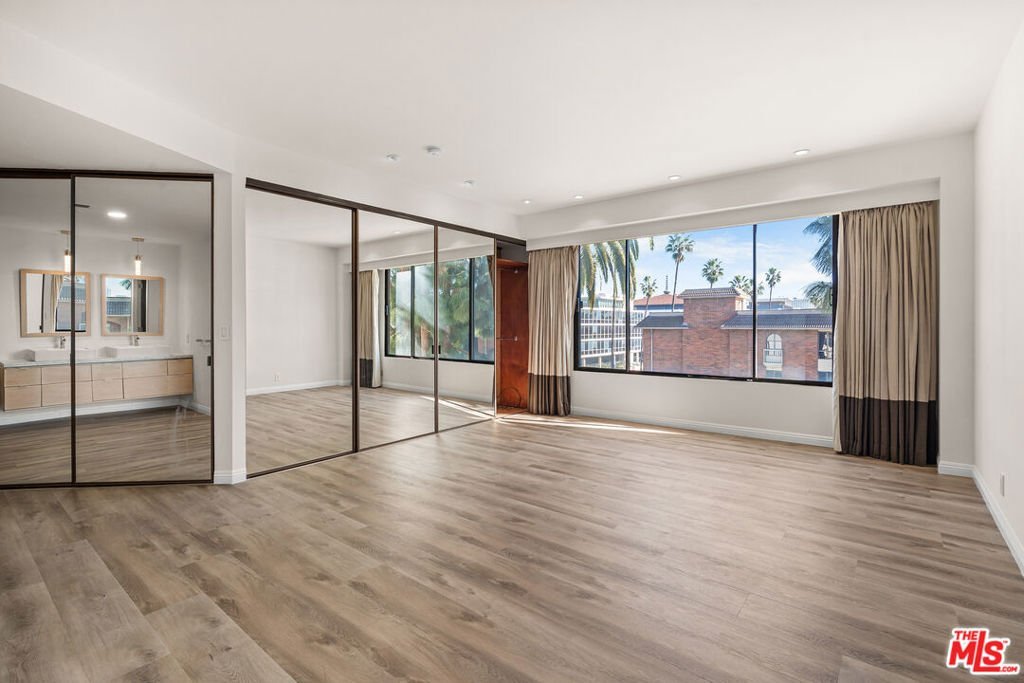 Spanning approximately 2,262 sq ft, this expansive 2-bedroom and 3-bath North-East corner residence offers refined living in the prestigious Wilshire Fremont Condominium, located in the heart of Hancock Park. Set within a solid concrete building, the home features soaring ceilings and an open, light-filled floor plan that provides a quiet and serene living environment. The chef's kitchen is equipped with Viking appliances, custom cabinetry, and an oversized marble island, seamlessly connecting to generous living and dining areas highlighted by a grand chandelier and elegant fireplace ideal for both entertaining and everyday comfort. Enjoy seamless indoor-outdoor living with multiple private balconies perfect for year-round use. Both bedrooms feature en-suite bathrooms, ample closet space, and access to private balconies with sweeping city, mountain, and Hollywood Sign views. The luxurious primary suite includes a spa-inspired bathroom retreat. Additional features include hardwood floors throughout, refined finishes, and a separate private storage room in the garage.Residents enjoy premium amenities including a pool, meeting room, and 24-hour on-site security. HOA dues cover water, trash, building maintenance, and more. Ideally situated on Wilshire Blvd, just minutes from Larchmont Village, The Grove, and Koreatown, this rare offering delivers exceptional space, timeless elegance, and an unbeatable central location.