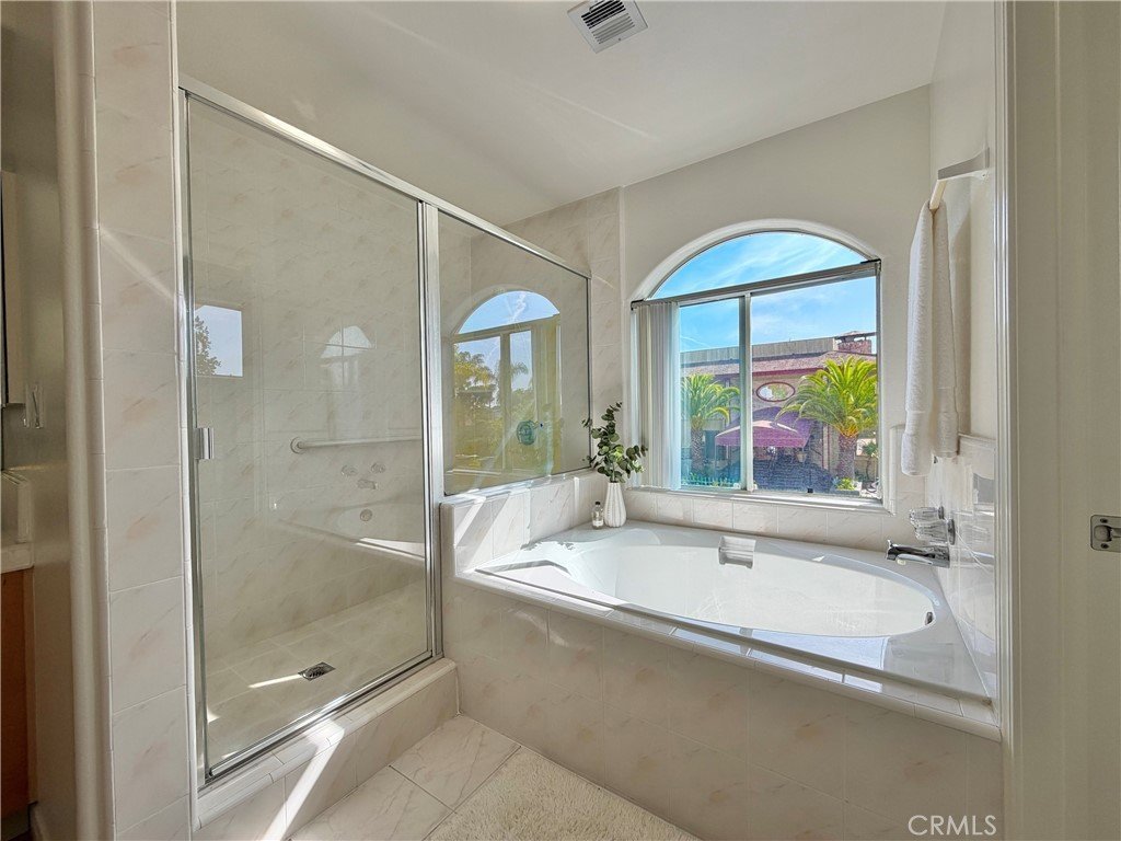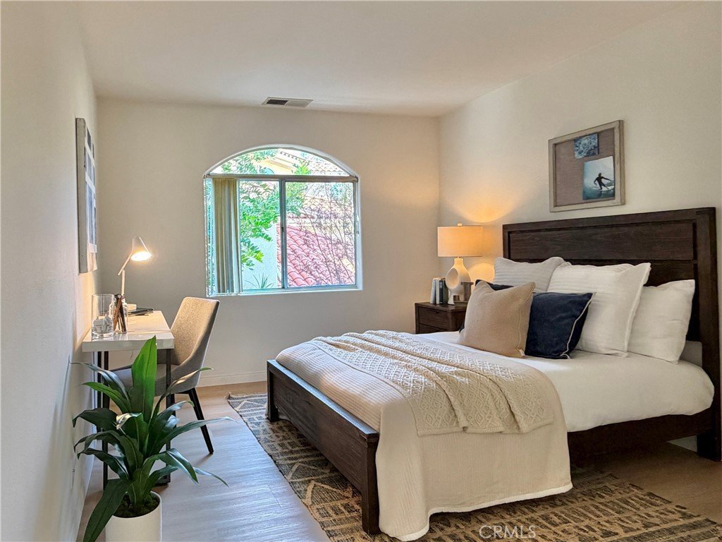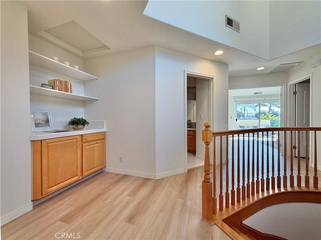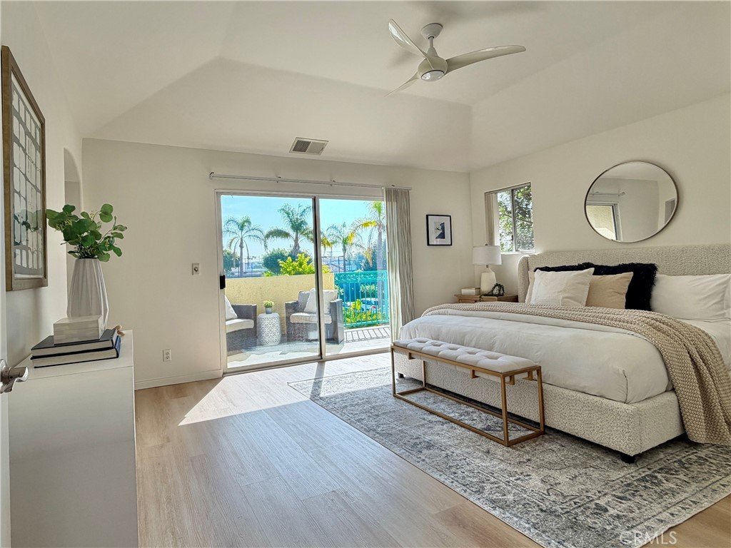 A spiral staircase leads to the second floor that features your master bedroom suite with a large balcony to enjoy the cool South Bay breezes. The master bathroom features plenty of cabinets and a large bathtub and large walk-in glass shower. Adjacent is a very spacious walk-in-closet.