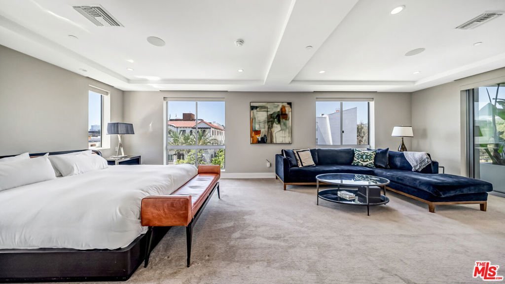 Welcome to elevated luxury living in the heart of Beverly Hills. This expansive top-floor Penthouse offers 3 bedrooms and 4 bathrooms, plus a den, bathed in natural light and finished with exquisite custom hardwood floors throughout. Designed for a modern, sophisticated lifestyle, the open concept floor plan seamlessly blends living, dining, and entertaining spaces. A stunning chef's kitchen anchors the home, featuring an oversized island, breakfast bar, Miele appliances, and a generous walk-in pantry. Floor-to-ceiling windows frame breathtaking, panoramic views, creating a dramatic yet inviting backdrop for both everyday living and unforgettable entertaining. The luxurious primary suite is a true private retreat, offering a serene escape with a spa-inspired en-suite bath complete with a soaking tub, separate shower, and an expansive designer walk-in closet. As a rare top-floor Penthouse, the residence is crowned by a private rooftop deck with a Jacuzzi, where sweeping city views set the stage for sunset evenings and elevated outdoor living.Enjoy the ultimate in convenience and security with direct elevator access, three side-by-side parking spaces, and a dedicated storage unit. Residents also benefit from exclusive amenities including a state-of-the-art fitness center, business center, and 24/7 doorman and concierge service. Ideally located just moments from Rodeo Drive's world class shopping and Beverly Hills' finest dining, this is a rare opportunity to experience the pinnacle of luxury penthouse living where every detail is thoughtfully curated for comfort, style, and sophistication.