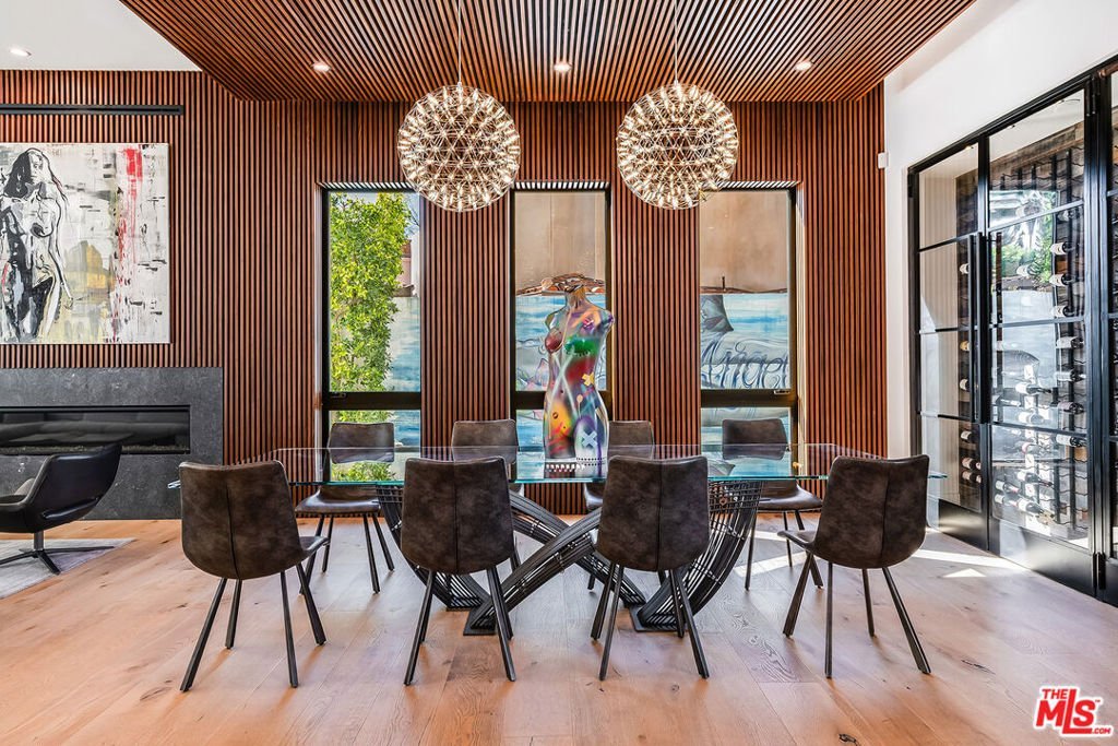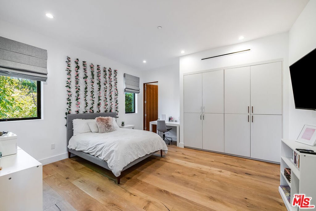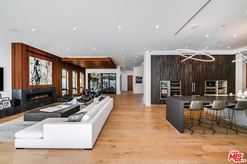 A truly irreplaceable estate, 4530 Libbit Avenue is a masterclass in art, architecture, and elevated living, set behind gates on a sprawling 20,000 square foot private lot south of the Boulevard. Encompassing approximately 8,000 square feet of refined interiors, this one of a kind residence offers six bedrooms plus a dedicated office and seven bathrooms, curated for those who demand rarity, scale, and distinction. From the moment you arrive, the home announces itself with a dramatic grand glass front door and soaring ceilings that flood the space with natural light. Upon entry, guests are greeted by a monumental hand painted mural by Christina Angelina, setting a museum level tone that continues throughout the home. The formal dining room is equally unforgettable, framed by expansive windows showcasing a striking mural by renowned street artist Jules Muck, seamlessly blending fine art with everyday living.Wide plank white oak floors flow through an open, airy layout designed for both grand entertaining and intimate living. The gourmet kitchen is a showpiece, featuring Miele appliances, dual ovens, a walk in pantry, espresso and coffee bar, abundant custom storage, and an oversized island with generous seating, all overlooking the backyard through a large picture window that brings the outdoors in. Designed for modern luxury living, the home also offers a private movie theater, expansive patios, and effortless indoor outdoor flow throughout. The primary suite is a sanctuary of its own, complete with a dual sided fireplace opening to a private patio overlooking the grounds, a massive custom closet, and a spa caliber bath unlike any other, featuring a large round soaking tub, separate his and her water closets, an all glass oversized shower, and a private sauna. The resort style backyard is an entertainer's dream, offering a waterfall pool and spa, fire pit lounge, large cabana, outdoor kitchen with built in table, fireplace, and lush mature landscaping that creates a true sense of seclusion and tranquility. Additional highlights include a three car garage, expansive gated driveway accommodating multiple vehicles, and a Control4 smart home system with 17 security cameras for advanced comfort and peace of mind. Ideally located close to premier shops and restaurants and within the coveted Lanai Road Elementary School district, this is a rare opportunity to own an architectural and artistic statement in one of Encino's most desirable enclaves. This is not just a home, it is a destination, a gallery, and a lifestyle, all in one.